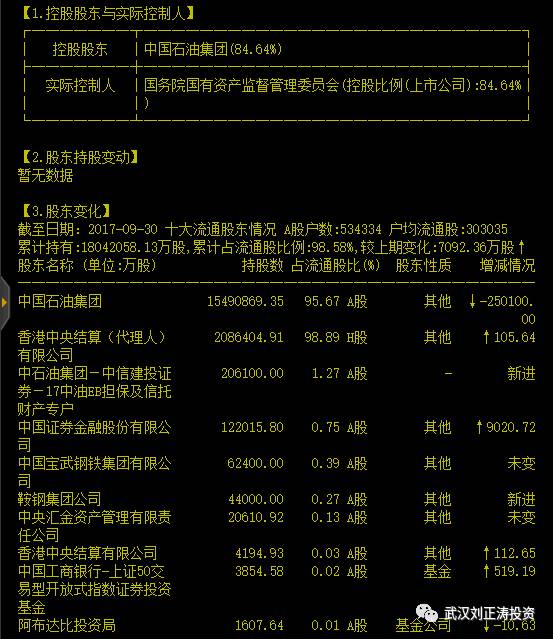 1、上面这张图,很清晰的将中国石油的股东结构呈现了出来,中国石油集团控股84.6%,十大流通股大约占3%,也就是外面流通的筹码不足15%,市值大约2300亿。这是国计民生的公司,国家很明显不愿意让外资染指,你懂的。