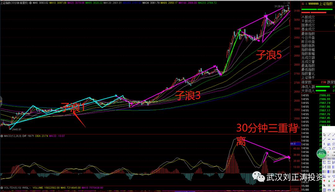 上证指数给大家分解一下30分钟上升5浪推动结构,走出来的基本上丝丝入扣: