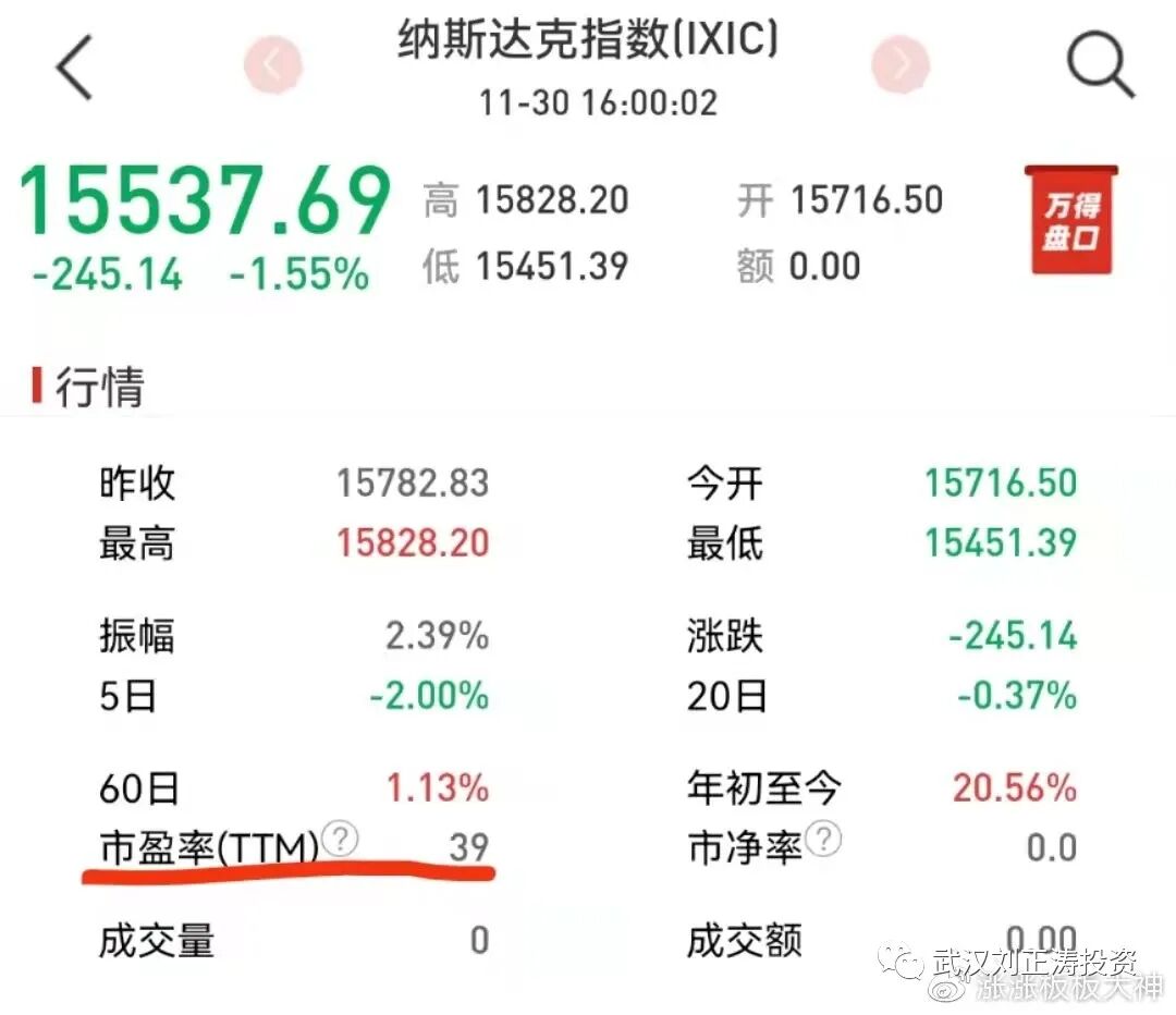 1、昨晚美股大跌,道琼斯跌652点,跌幅1.86%;纳斯达克跌245点,跌幅1.55%;标普500跌88点,跌幅1.9%。美股三季度财报公布完毕以后,目前标普500的市盈率已经下降到26倍,前面是超过30多倍的,可见美股蓝筹盈利能力惊人。纳斯达克的市盈率39倍,当然纳斯达克很贵,可是人家是做全球生意的,涨多了就应该跌;