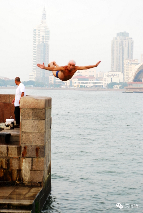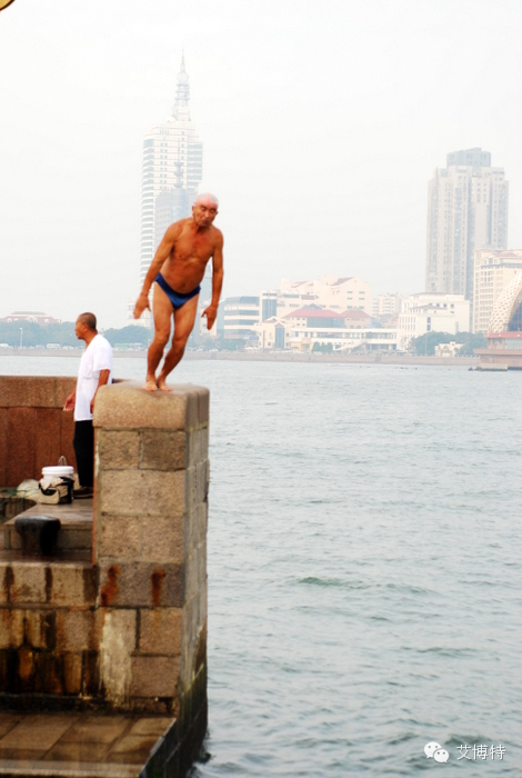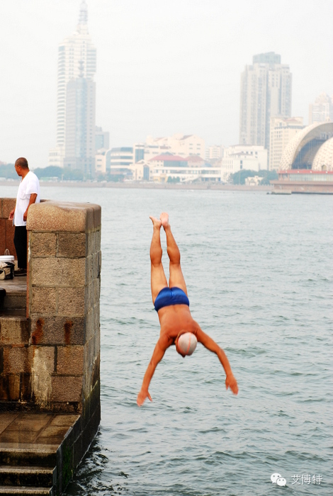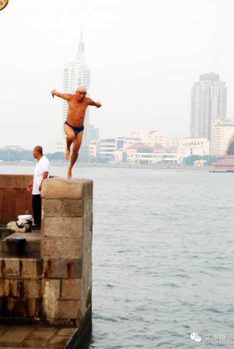 栈桥:跳水的老爷,跳水也是要排队的。不过人不多,基本上就是这个老爷在跳。