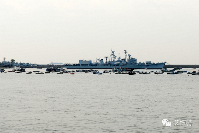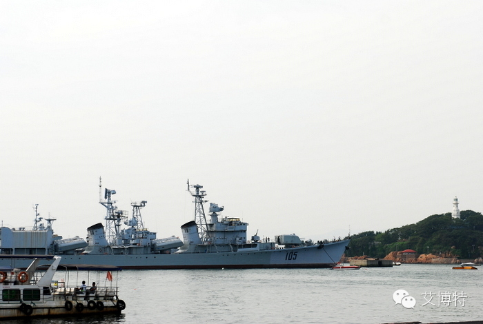 海军博物馆105号军舰,旁边是小青岛。
