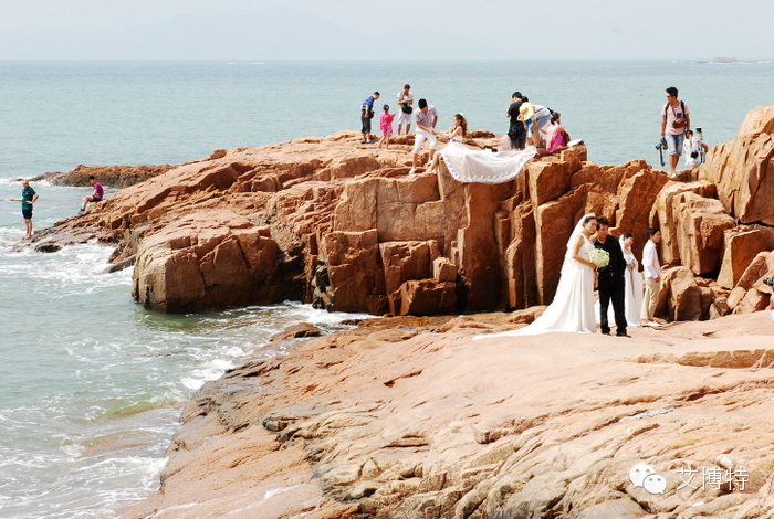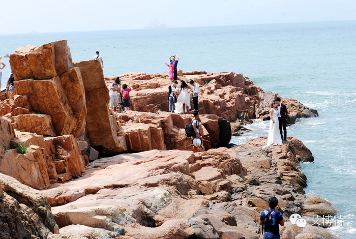 海角-礁石,拍婚纱的一对对。