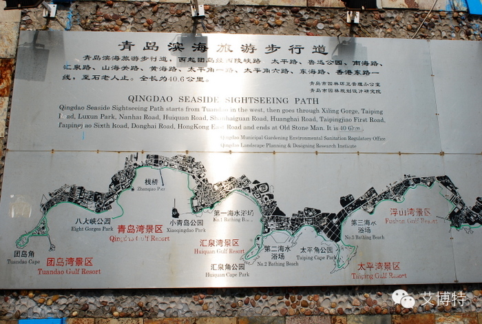 从栈桥步行到五四广场,12公里,4小时。这段滨海步行道非常成熟,步行道的大部分都在海边,一路经过众多景区,如栈桥海水浴场、海军博物馆、鲁迅公园、海底世界、第一海水浴场、八大关、汇泉湾、第二海水浴场、太平角、浮山湾,最后到达音乐广场和五四广场。