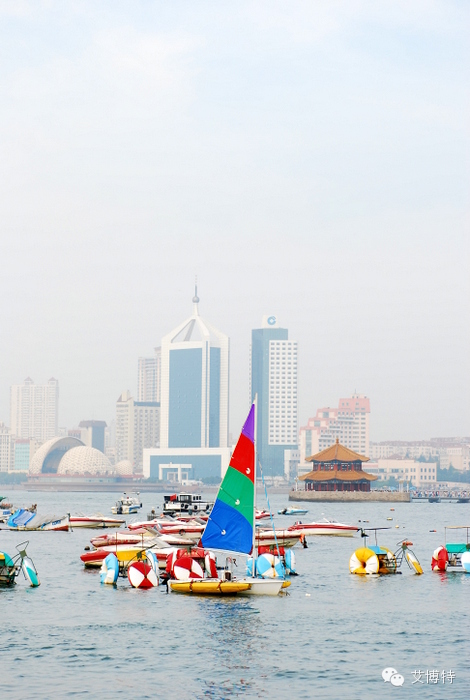 回望栈桥,彩色的帆船。