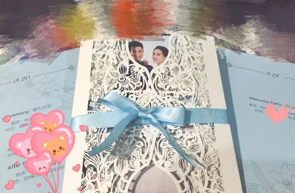 吴奇隆和刘诗诗大婚在即,婚礼请柬也在网络上曝光。诗隆婚礼请柬以白色为底色,上面有两人的合影,还绑着淡蓝色的丝带,十分清新浪漫。请柬上白色镂空的部分是木兰花的图案,正是《步步惊心》(观剧)中四爷和若曦的定情之物。据透露,吴奇隆3月20日在巴厘岛办婚礼。