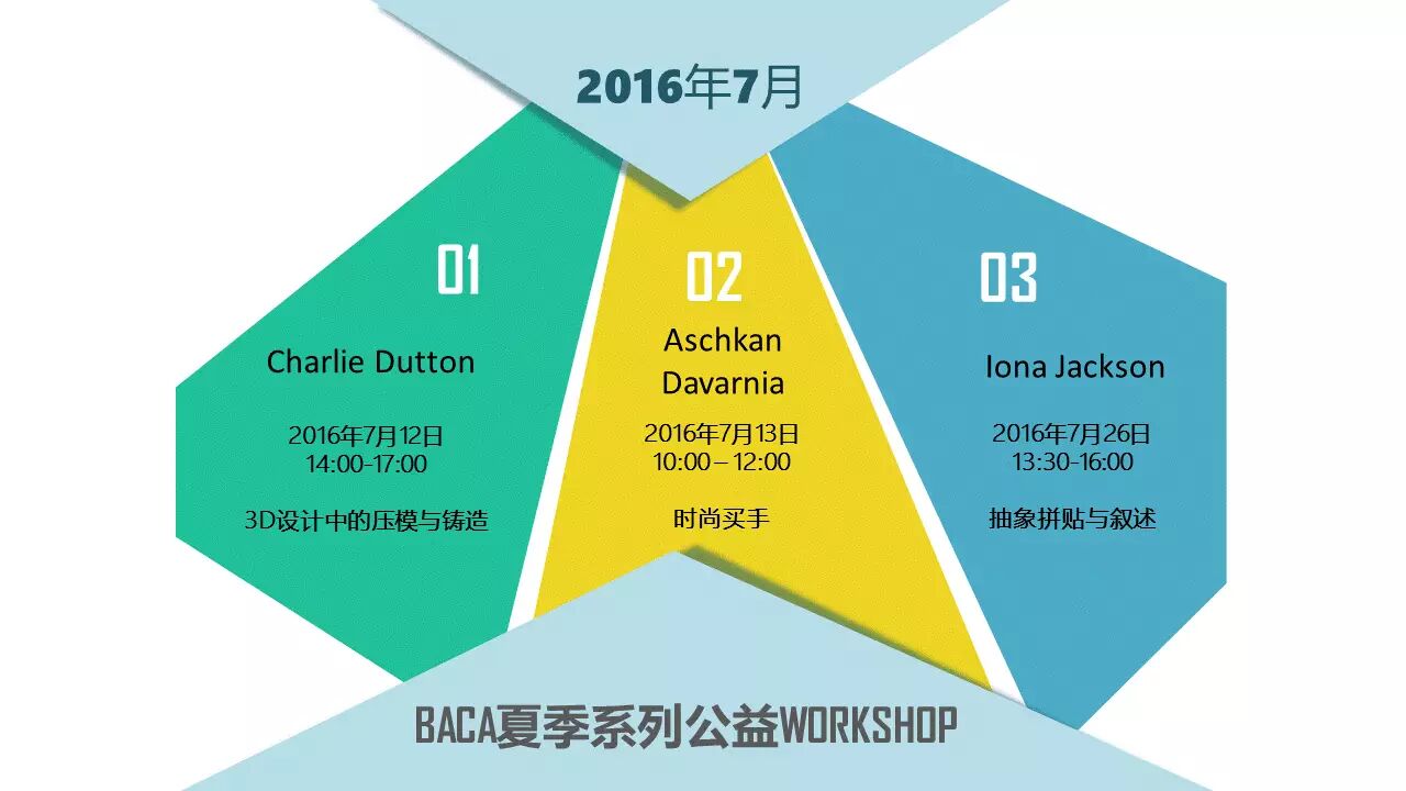 七月,炎炎夏季持续升温,有什么能比挥洒创作的热情和设计的灵感更让人畅快的事情呢。北京英伦艺大艺术中心(BACA)举办的系列公益WORKSHOP活动又要为大家送福利了!此次系列活动全程由伦敦艺术大学选派教师执教,为全国的艺术学生和青年艺术家提供了一个与国际顶尖艺术院校交流的机会,零距离、全免费的体验伦敦艺术大学的教学内容和学术氛围。