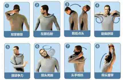 5.颈椎保健操,每天通过做颈椎保健操来放松及锻炼颈部肌肉,效果显著。