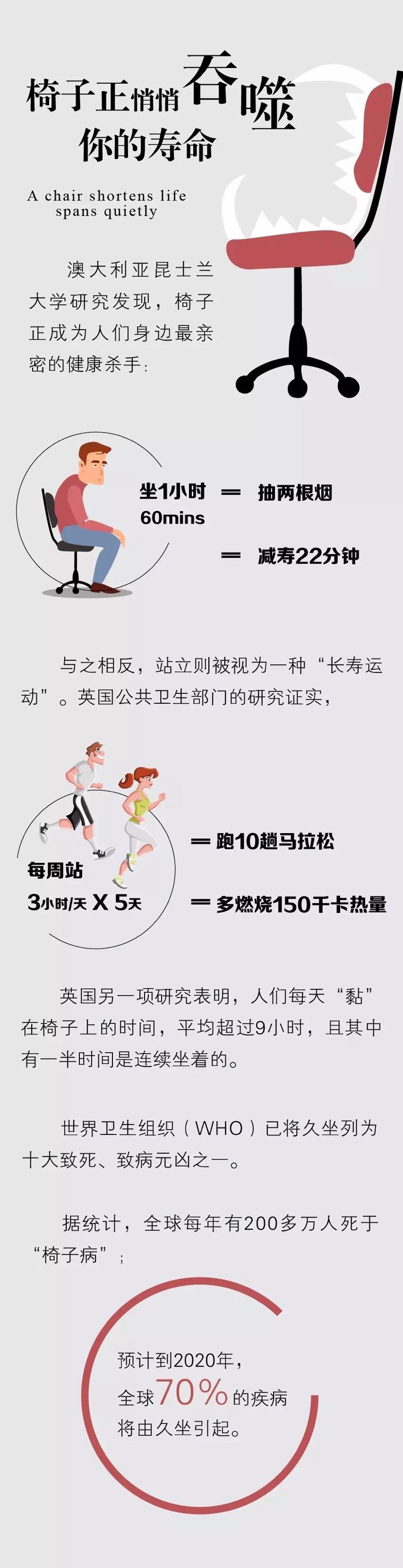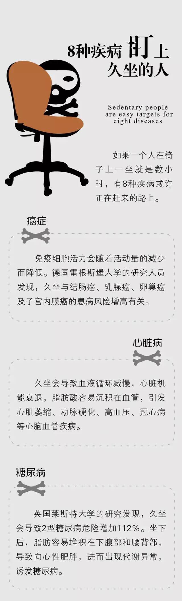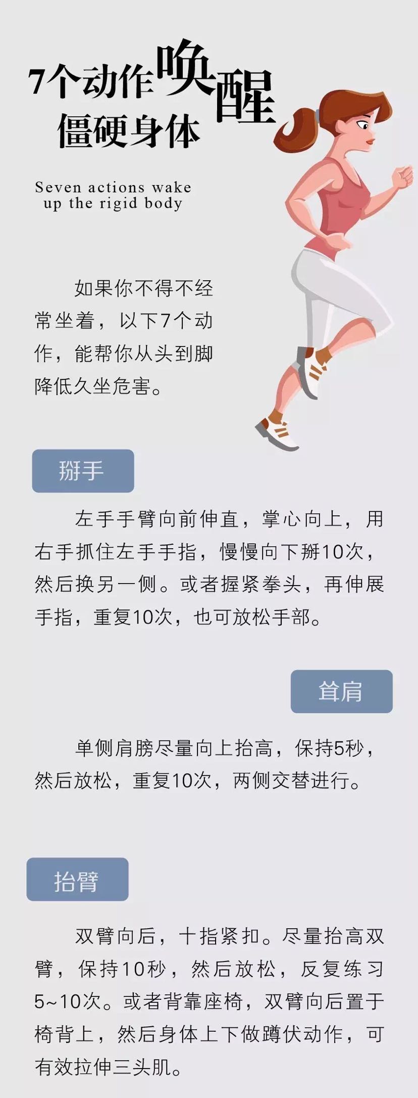 所以为了我们的健康,还是尽量要减少久坐的时间,坚持锻炼!