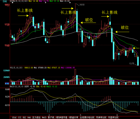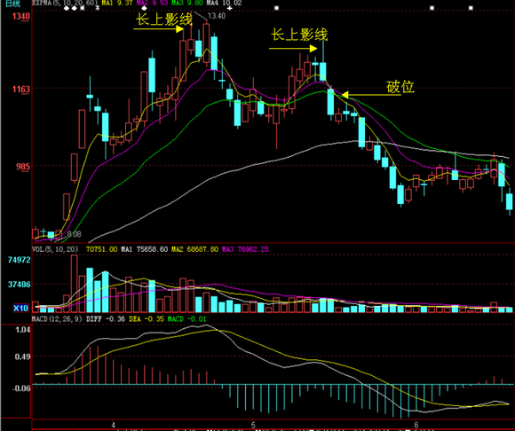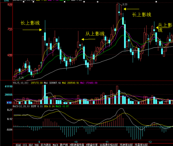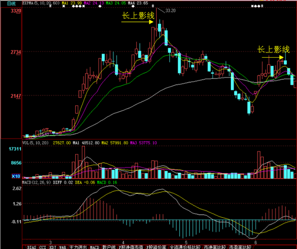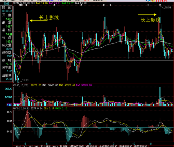 我们投资者往往有这样的投资经历:辛辛苦苦几个星期或者几个月的盈利,在大跌的时候几天就化为乌有,甚至倒亏。其实,这个不仅仅是运气。涨停集结十几年的摸索,发现长上影线是一个熟视无睹而又非常重要的K线。理解了她,你就成功了一大半。长上影线在k线中称为射击之星,尤其在高位出现时,第2天下跌的概率较大,高位长上影线后的下跌往往会引发下跌破位的走势,而股价一旦破位,将是一个绵绵无期的下跌路程。当发现手中的股票在高位出现长上影线时,投资者应当在当天收盘前卖出。如果当天没有卖出的,第2天冲高时一定要坚决卖出。