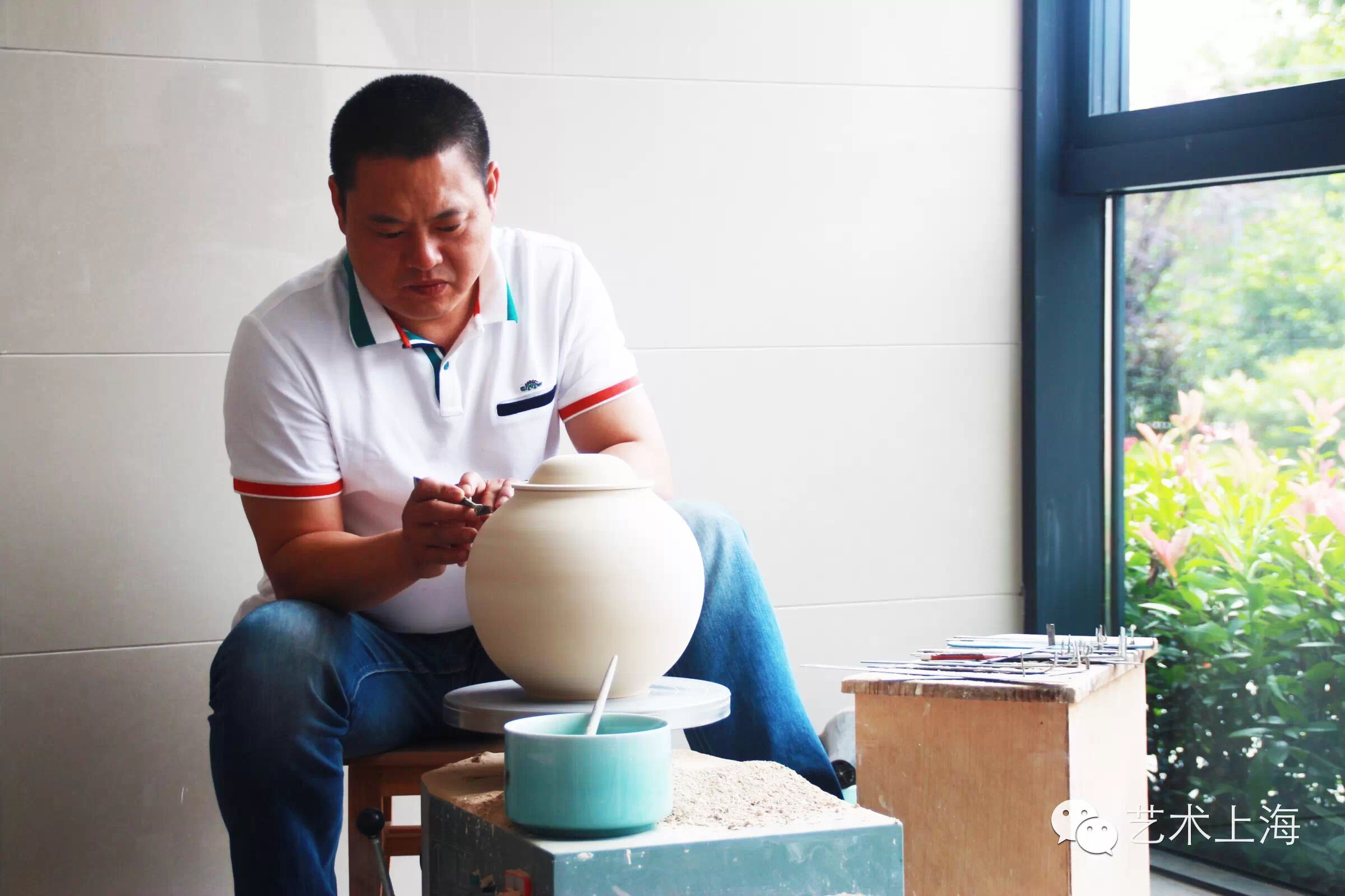 人民网《艺术上海》专家委员会一行抵达中国工艺美术大师毛正聪的府上时,乌云散去,天色如同刚出窑的粉青般透彻。毛正聪和身为浙江省工艺美术大师的毛伟杰父子二人在可以望见池塘幽径的落地窗前讲述自己的青瓷人生。