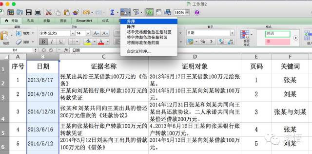 我们在处理案件时,主要工作就是通过证据核查案件事实,然后从诸多事实中提取案件线索,发现新的事实或找到认定错误的事实。因此对律师来说,对收集的证据或事实按不同关键词进行排序,通过不同的排序完成上述的任务至关重要。而Excel就是实现上述排序功能的最好工具。