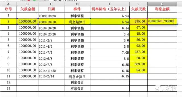 利用Excel计算欠款利息损失,不仅可以快速计算出利息损失结果,还能够让客户或法庭很容易理解其中的计算逻辑和计算方法,从而可以使其轻松判断该计算结果的有效性。毕竟只有受众充分理解和接受了其计算过程,才有可能接受该计算结果。这正是在使用Excel这一工具处理案件时应当高度注意的。
