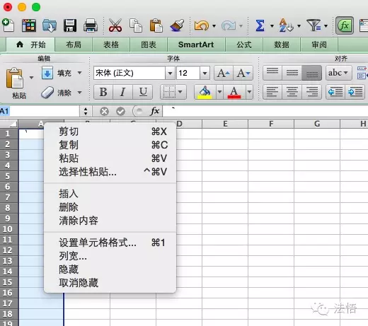 (2)在选定特定行或列后,同时点击鼠标右键,然后出现如下菜单,然后在该菜单中选定“设置单元格格式”。