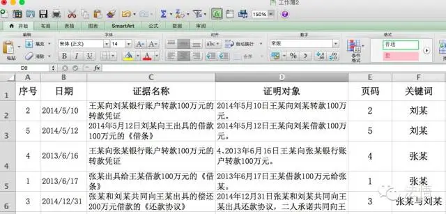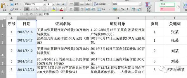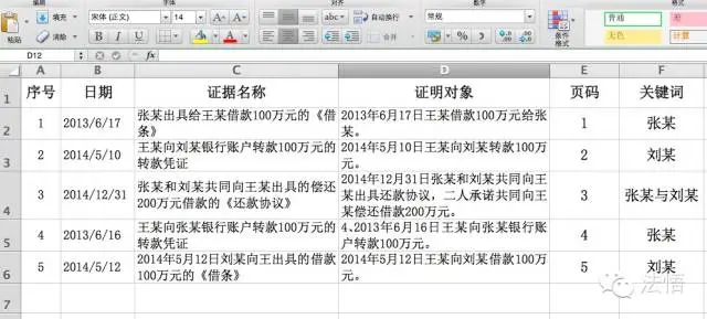 通过一个案例,利用Excel对当事人提交的证据以及案件事实进行梳理。