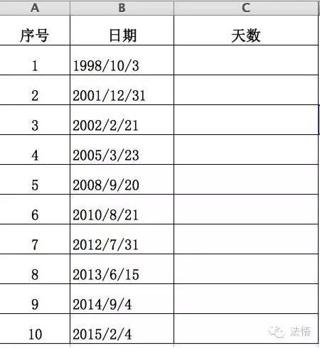 依据该计算的需要,我们将表格的内容设计为“序号”、“日期”和“天数”。设计完成,录入Excel表格,录入后的格式见图1。