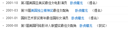如果说张艺谋是章子怡的领路人,那么李安则用一部《卧虎藏龙》将章子怡推向上国际影坛。众所周知,在拍《卧虎藏龙》之前,章子怡给人的印象就是一个身穿大红袄子的村姑,然而《卧虎藏龙》上映后,年仅21岁章子怡却一夜之间响誉国际,获得十几个国际国内电影大奖及提名。