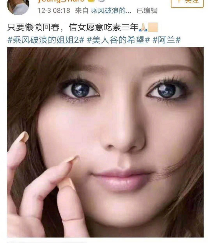 所以,阿兰来到《姐姐2》,而这位粉丝得开始吃素了!