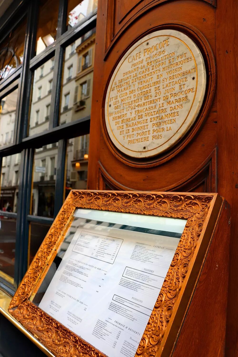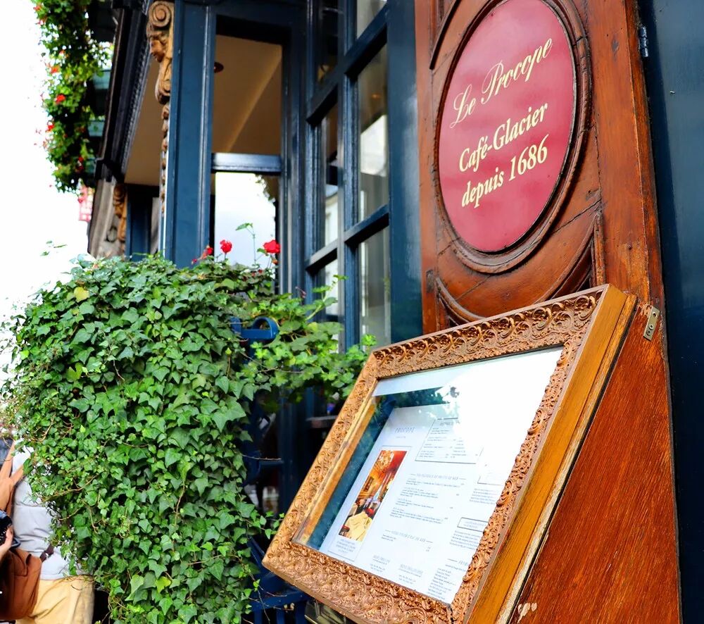 最后,重磅推荐一家餐厅。这是巴黎最古老的餐厅。百年老店已不足以形容它悠久的历史——它今年已经331岁了。诞生于1686年的Procope是巴黎第一家咖啡厅。尽管从外表看,你很难想象这座咖啡店已经有这么悠久的历史,但如果你了解它,你一定不会后悔自己走进了这座法国近代史的历史长廊,与先哲共进午餐。