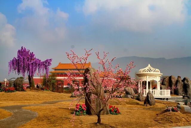 明清宫苑以“故宫”为模板1:1复制,是横店影视城目前最大的影视基地,真实地再现了多个历史时期的官府民居、街市店铺和宫殿风貌。金碧辉煌的帝王宫殿、富丽堂皇的龙阙凤檐、优雅华丽的花草园林、清新雅致的湖泊溪流,无不重现着北京故宫恢弘大气与宏伟华丽。尽管是故宫的“克隆品”,明清宫苑仍将故宫的帝王之气体现的淋漓尽致。