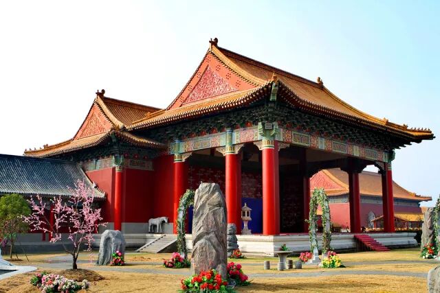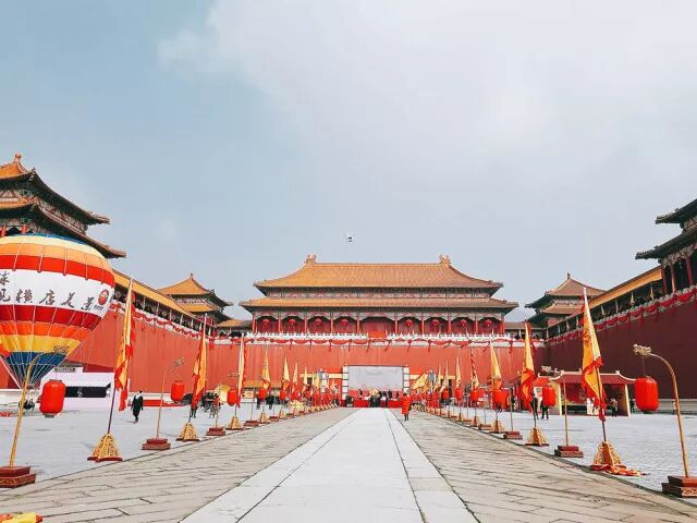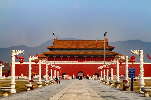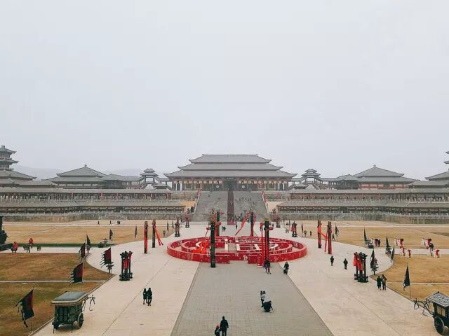 位于横店影视城的秦王宫景区是为陈凯歌导演拍摄历史巨片《荆柯刺秦王》而建,它原型是秦王朝最主要的宫殿——咸阳宫。
