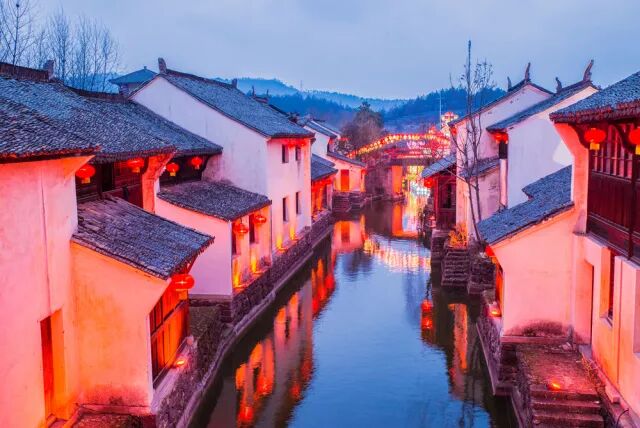 在横店影视城,一幅江南水墨画就这样安静地呈现在游客面前。这里是横店梦幻谷景区。梦幻谷景区包括梦文化村、横店老街、江南水乡、水世界四大区域,是横店影视城的唯一的一个夜景区。
