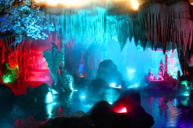 横店梦泉谷温泉度假区是横店影视城着力打造的大型养生休闲度假旅游项目,景观设计定位为侏罗纪时代动植物及远古时期火山岩风貌,采集地下近千米地热水的“氟水理疗温泉”,为温泉中的珍品,被称为“冬天都可以玩的水世界”。