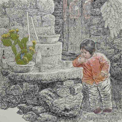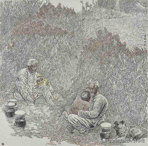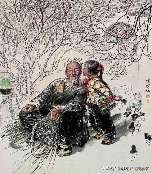 王有政的人物画十分注重细节的描绘,而且越画越深入,越画越尽兴,乐此不疲。他近期完成的《太行人家》《流水清清》《黄土高原人家》《秋收时节》《早春》《清晨》《耕读传家》等作品,无论人物情态的传神写照还是自然神韵的流露与呈现,都离不开细节的精致描绘。老人的皱纹,小孩的眼神,石头的纹路,树干的肌理,小河里的流水,树丛中的小花……画面中的一切,都自然生动,生机盎然。“细节决定成败”,也许正是由于细节的完美呈现,才保证了作品整体意象的最终品质。