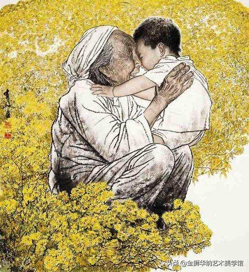 王有政出身于民风淳朴的晋南农家,他至今仍保持着劳动人民勤劳、质朴、善良、忠厚的品性。他在《父老乡亲》中有一段题记:“我来自黄河岸边一农家,日后成了画家,但无论走到多么遥远的地方、到了多么发达的现代都市,我都牢记着我是一个农民的儿子,永远活跃在我心灵深处的仍然是用辛勤的汗水哺育了我的父老乡亲。”他热爱农村就像热爱自己的家乡一样;他对农民的亲情就像对待自己的父母兄妹一样;他描绘的农家就是他魂牵梦绕的灵魂栖息地。数十年来,王有政与黄土地上生活的人们情感相通、心心相印,许多儿时生活的美好回忆,也常常会在他的作品中流露出来……。他对农村生活的观察不是居高临下、走马观花式的看客,而是身居其中、平朴亲切的审美视角。农村生活真实、生动、朴素、自然的原生状态,给予他的艺术创作无穷无尽的滋养。王有政的人物画作品多具有亲切、平和、温馨、自然、质朴的审美特质。他的作品题材多描绘生活中的亲情,呈现温馨的人性。如母子情、祖孙情、姐弟情……这些人类共通的情感,纵可以超越时代,横可以跨越地域、民族,从而实现画家与观者的心灵共振和情感共鸣。