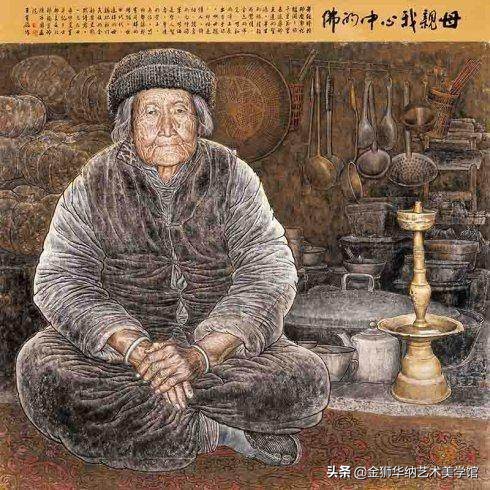 《母亲——我心中的佛》表达了王有政内心深处对母爱的深切体验。他在作品的题记中写道:“年轻时我那么匆忙离开了你,千里万里去追寻那天边的圣迹,半生的旅程教我觉悟,金色的佛光、无私的净土,原出自于你。啊!母亲。哪怕是伟人、领袖、骁勇的元帅将军,无论是哲人、智者、普通的劳工、商旅,恐怕都跟我有同样的体验。世世代代,这样的母亲把我们民族的全部历史默默谱写。”母爱题材一直是王有政表现人间亲情的动力。他把母爱当做最纯粹、崇高而普遍的人性之爱,并转化成一幅幅感人肺腑的画面:《妈妈的宝贝蛋》《奶奶妈妈都爱我》《母子图》《乳汁的河》……