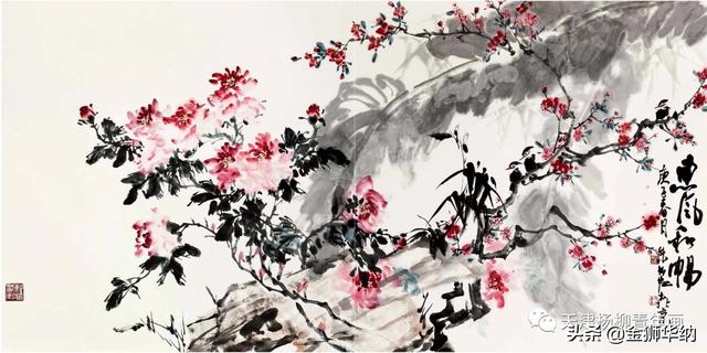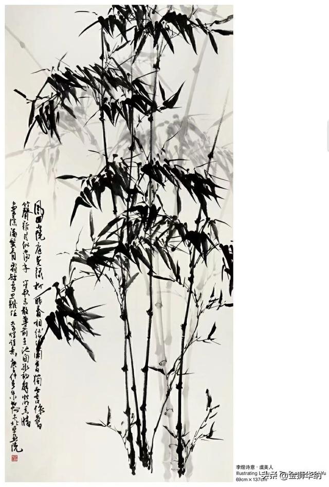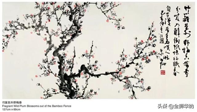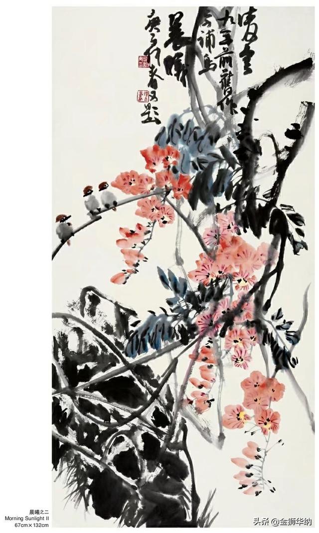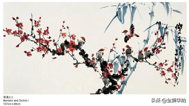 笔墨的含意则与线条相近,而且墨的地位从属于笔,这已是定论,笔可说是线的别称。中国画的线乃是天生丽质不假脂粉的美人,而墨分五色之说则更表:在中国画家看来,墨的黑色包容了绚丽的自然。因他具有很高的书法修养,所以他进入花鸟画就能直抒己意,他注重气势之美、意态之美、韵律之美,能够放笔直追物象之魂魄。