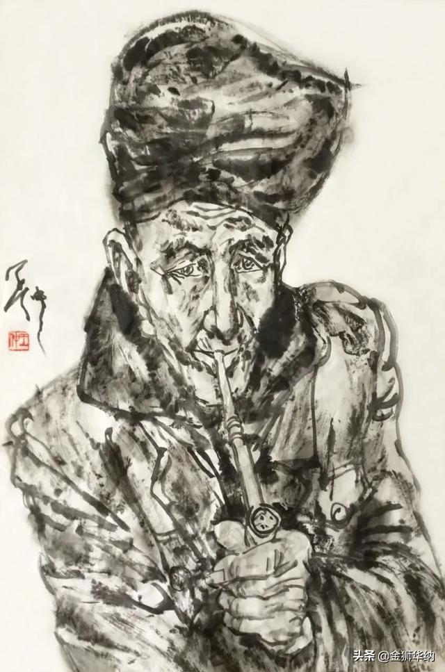 抽烟的农民 中国画 70cm×46cm 2016年 王仲