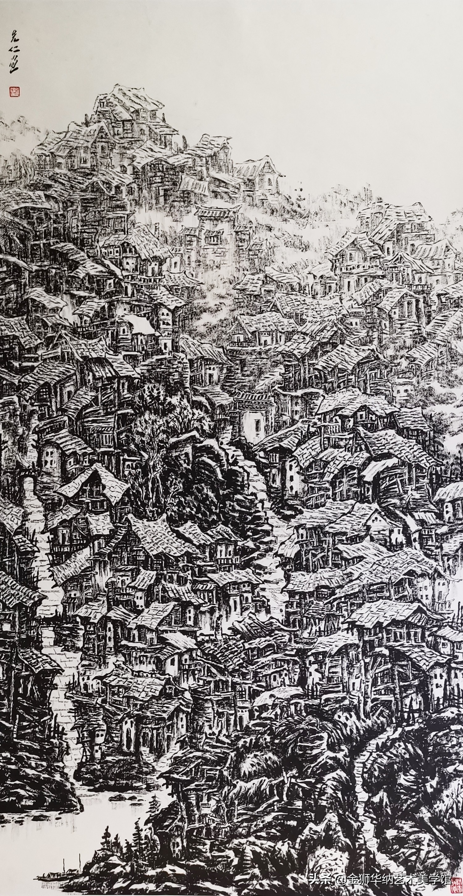 “雲朵上的羌寨”入选第二十三届全国版画作品展,画家张先仁与他的作品“雲朵上的羌寨”