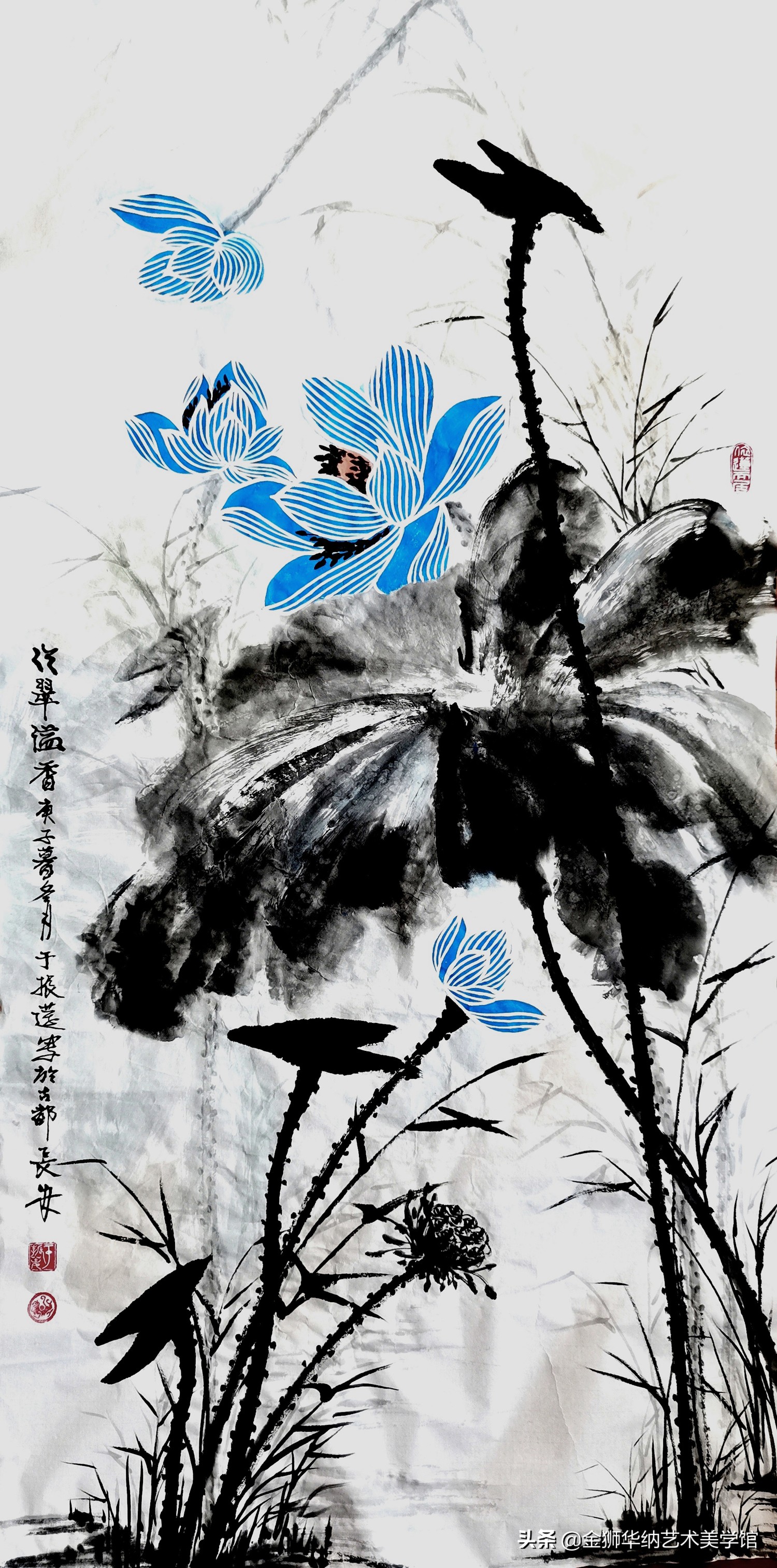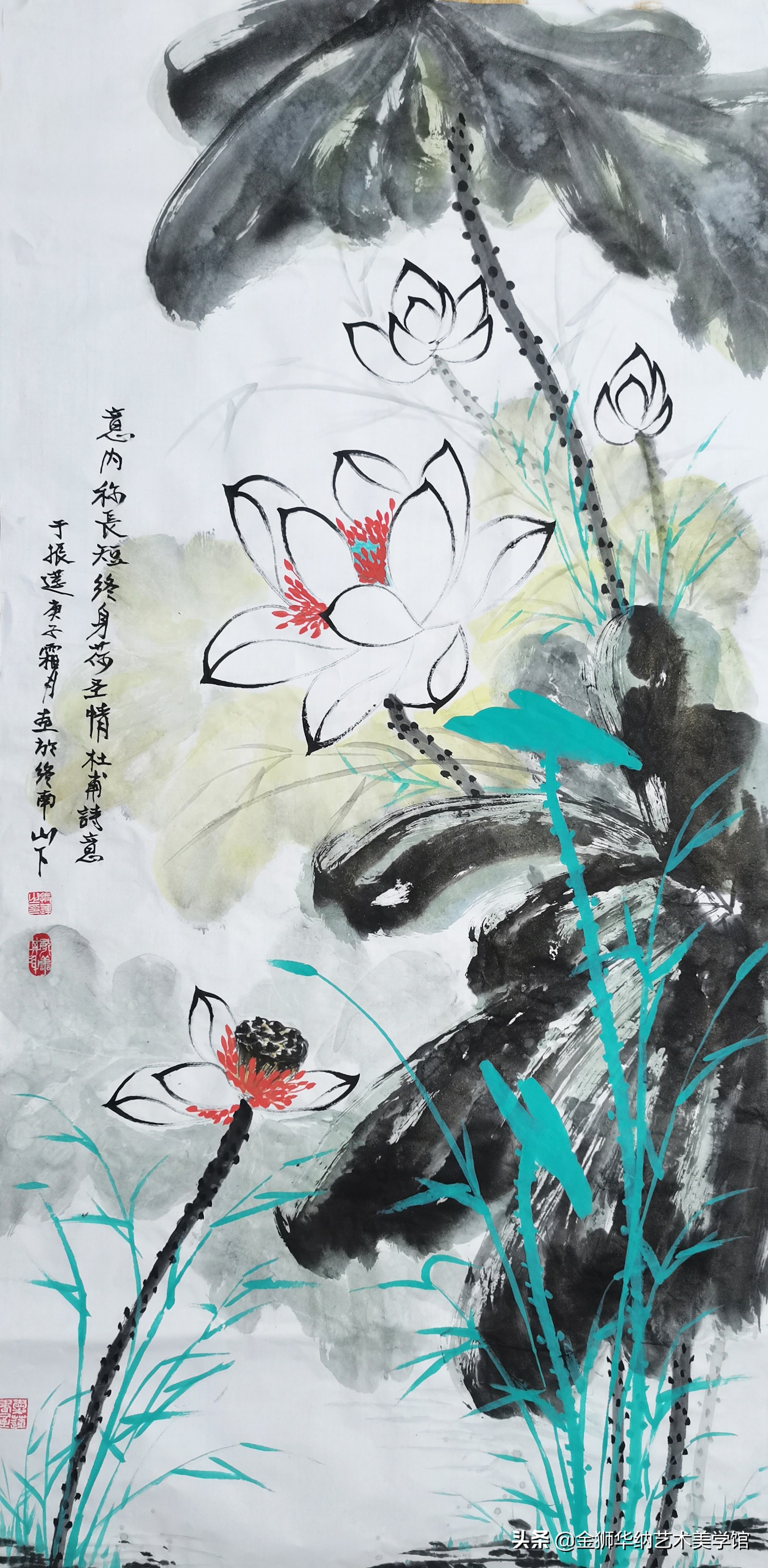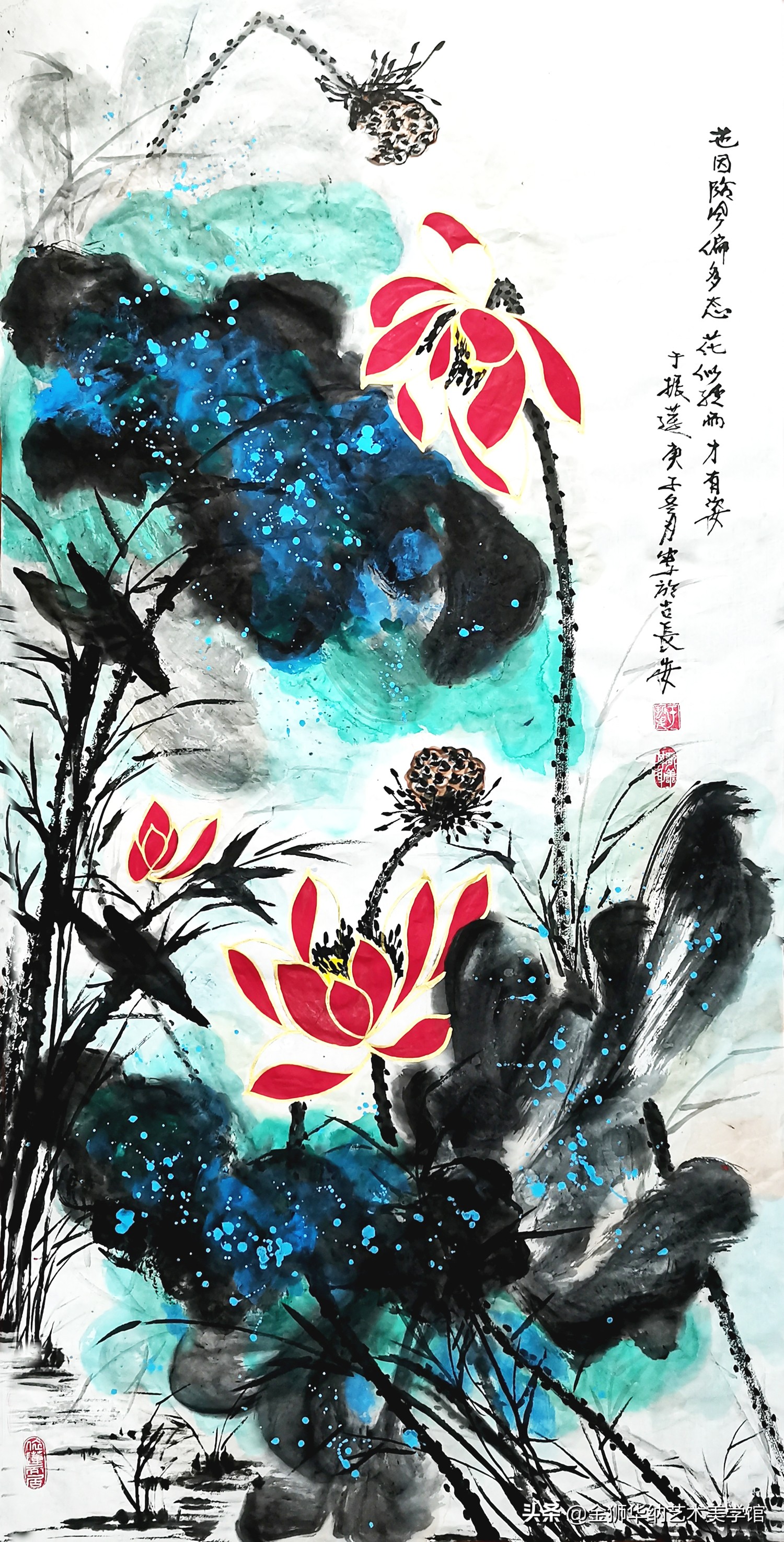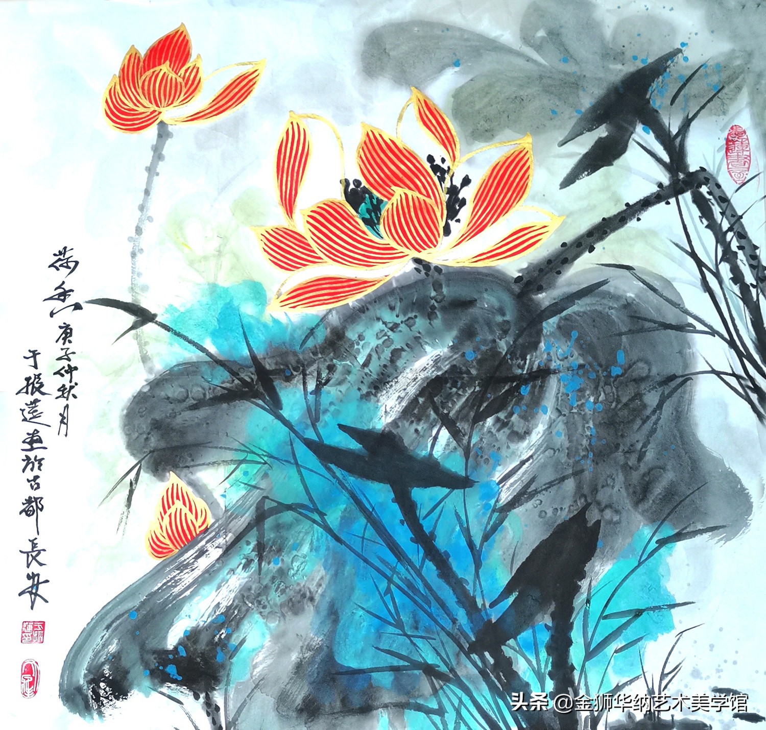 画家于振莲艺术简介:于振莲,1950年生于山东文登,青年时代就酷爱绘画,上世纪七十年代末,师承长安画派名家何海霞先生,并成为入室弟子,专攻仕女、山水画法,尤长画荷。于振莲在三十多年绘画生涯中,以张大千先生、何海霞先生为宗师,研习绘画艺术。并追随恩公多年,在其人格魅力感染和文化氛围的熏陶下,耳濡目染,聆听教诲和手把手的指导,深得其绘画真谛,进而逐渐形成格调新颖、笔墨大气、秀润飘逸、苍劲有力的绘画艺术风格。她在学习“大风堂”画荷技法的基础上又有创新,被长安画坛誉为“大风堂”传人。她的作品多次参加全国和省、市画展,并屡屡获奖,不少画作被博物馆、纪念馆及知名人士收藏。于振莲现为国家一级美术师,中国炎黄画院院士,中国三百书画研究院陕西分院副院长,中国文化部艺术交流中心理事;北京金大都画院特聘画家;陕西省美术家协会会员等