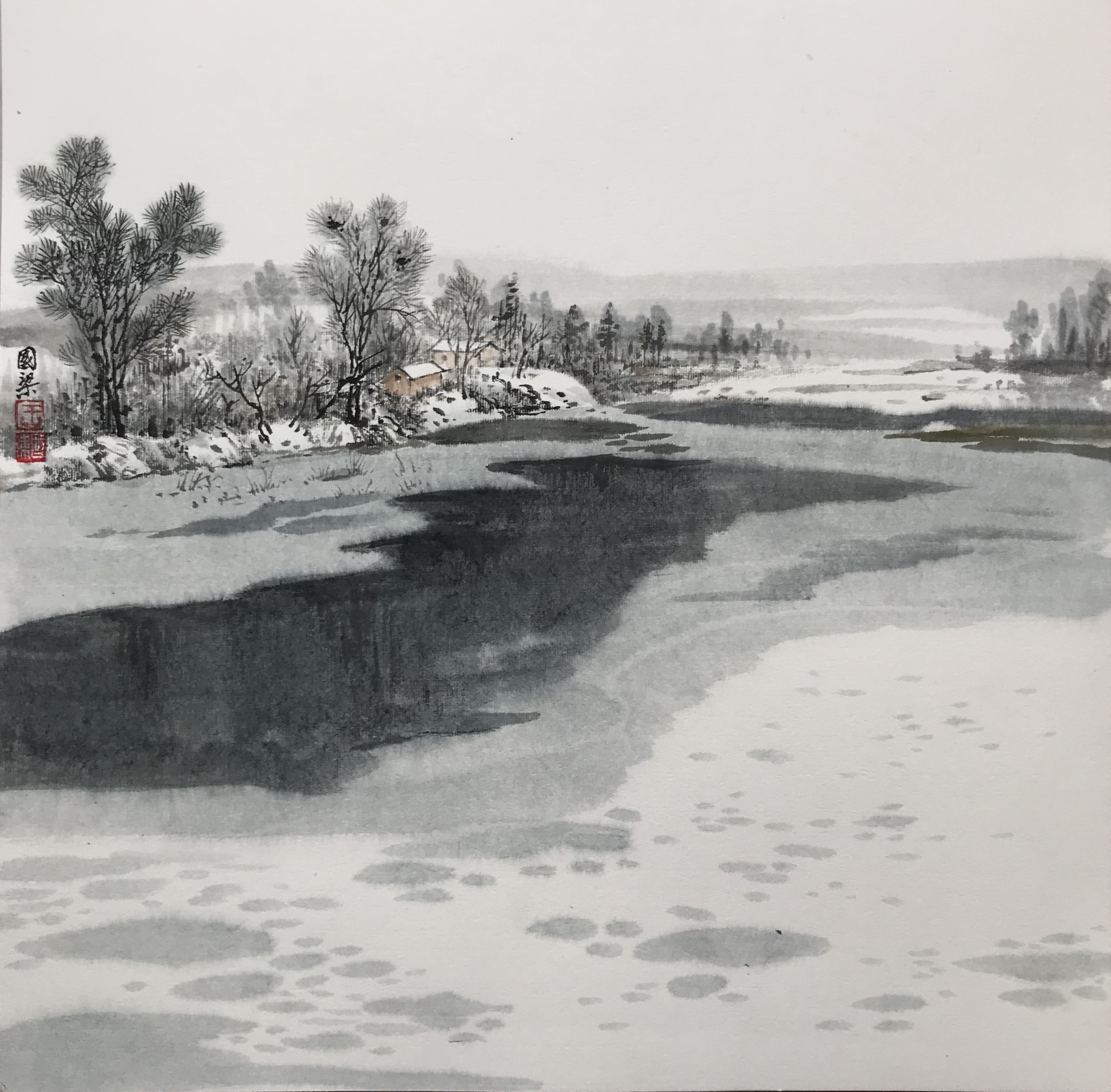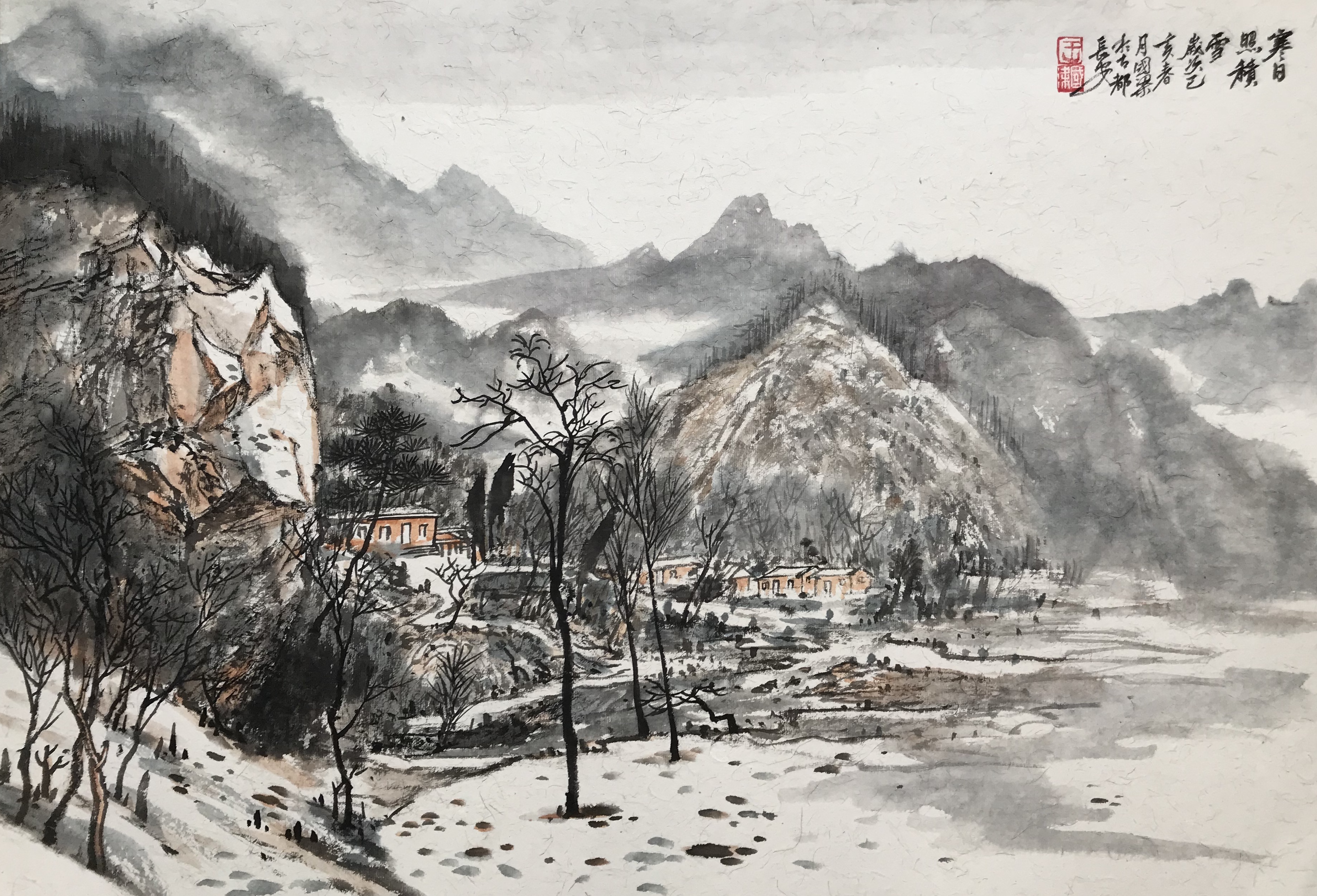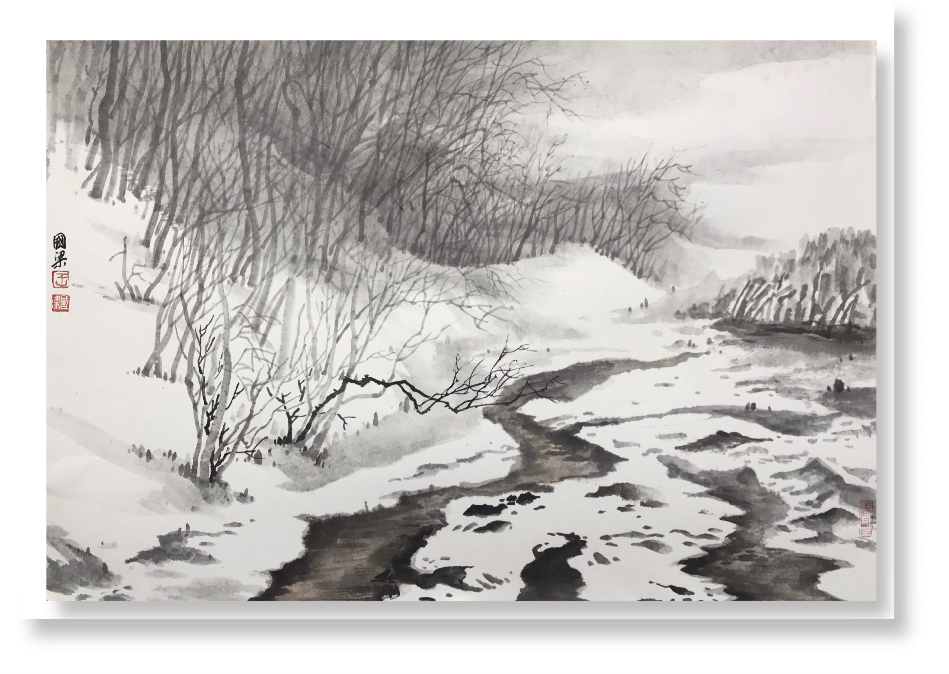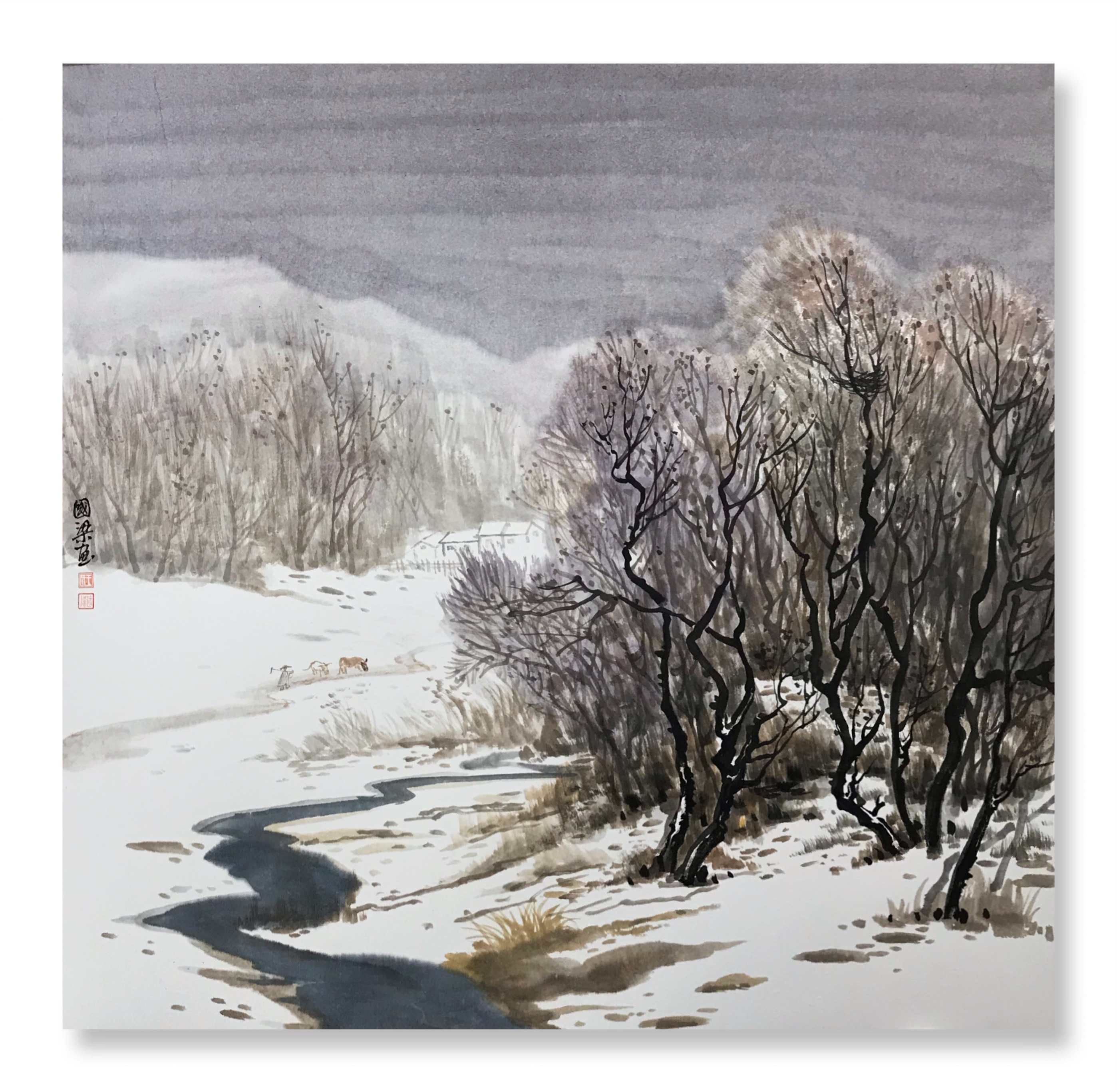 快雪时晴,国梁的一批雪景作品也出现在我们面前,令人眼前一亮。
