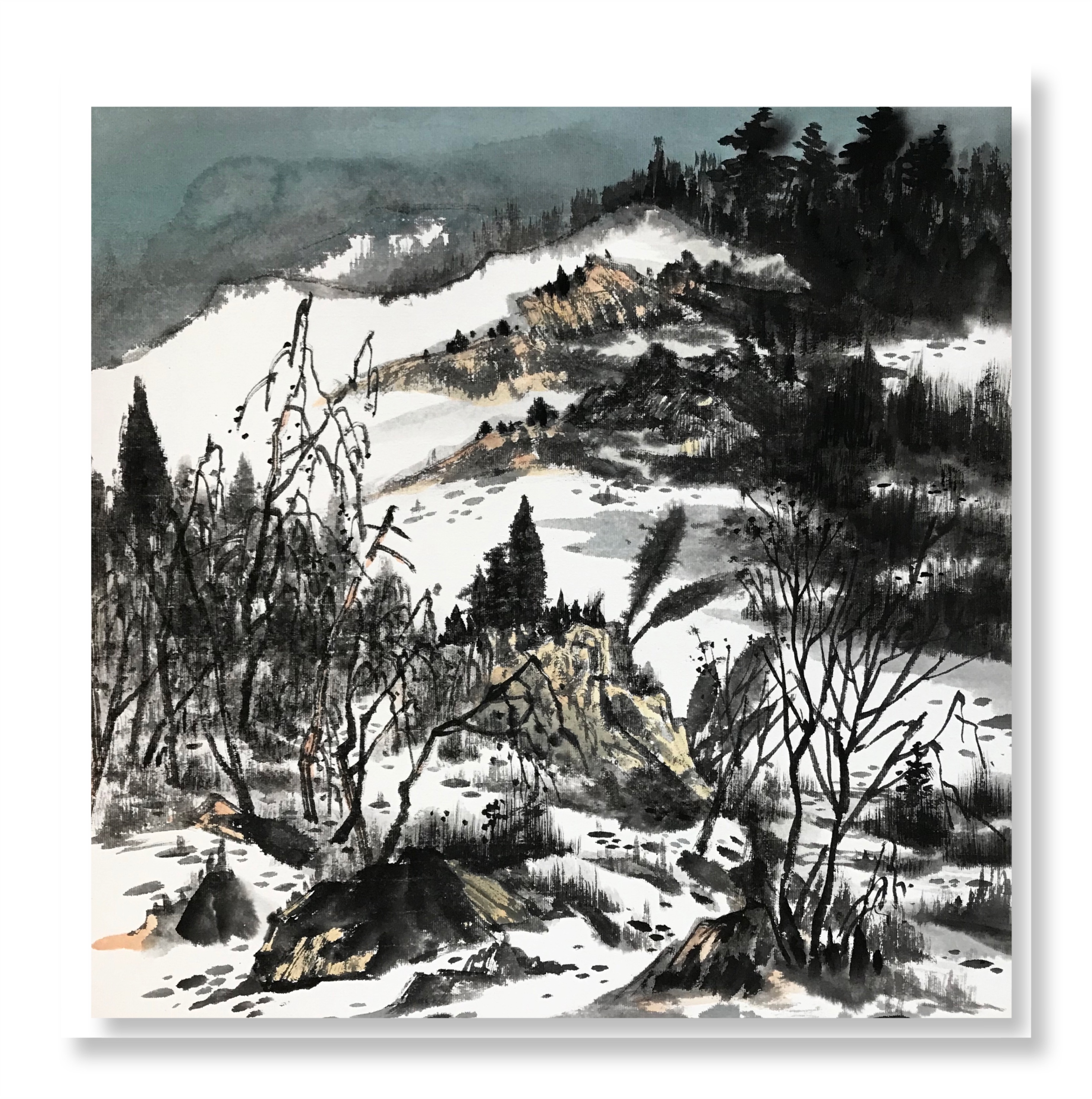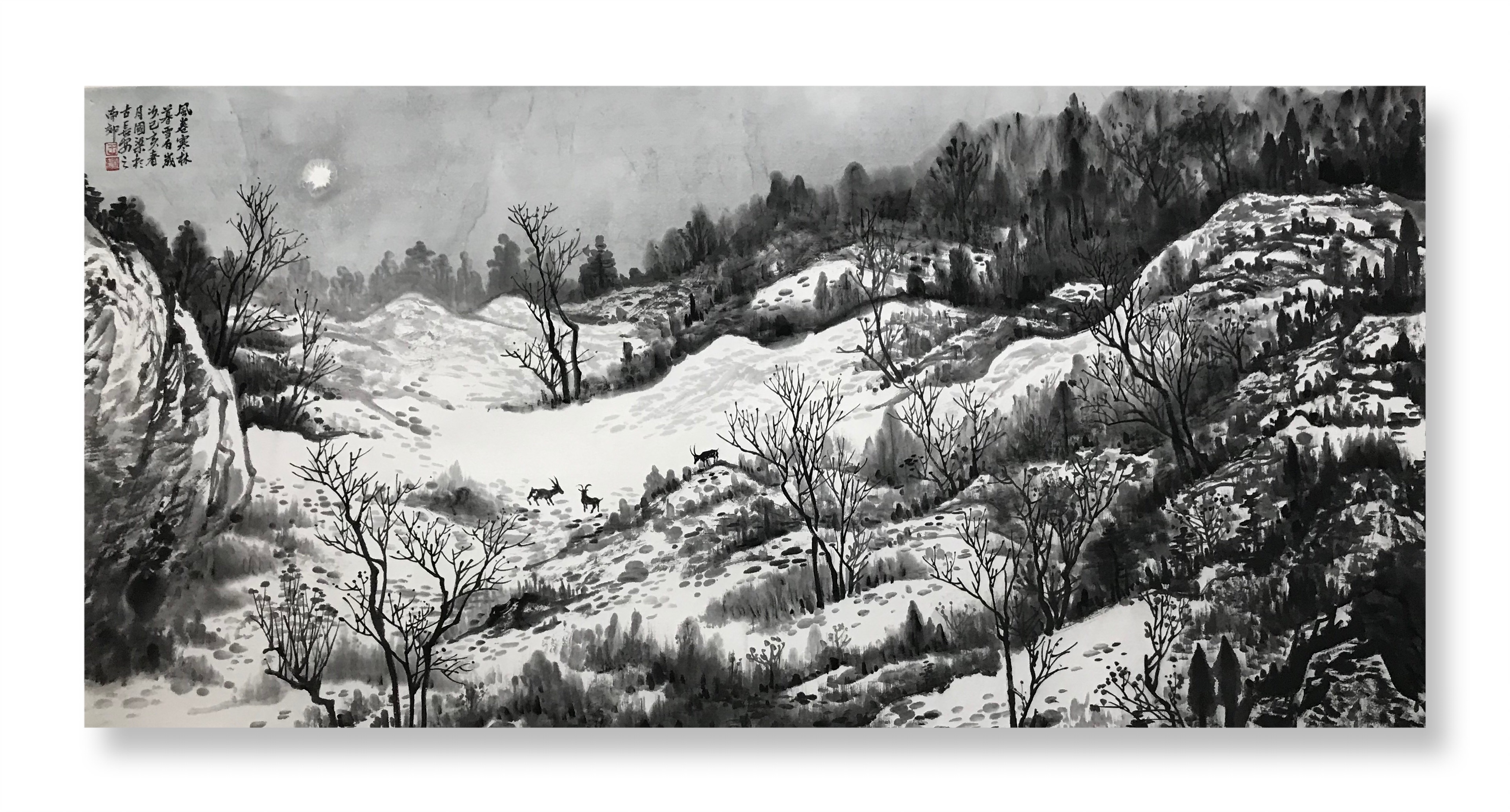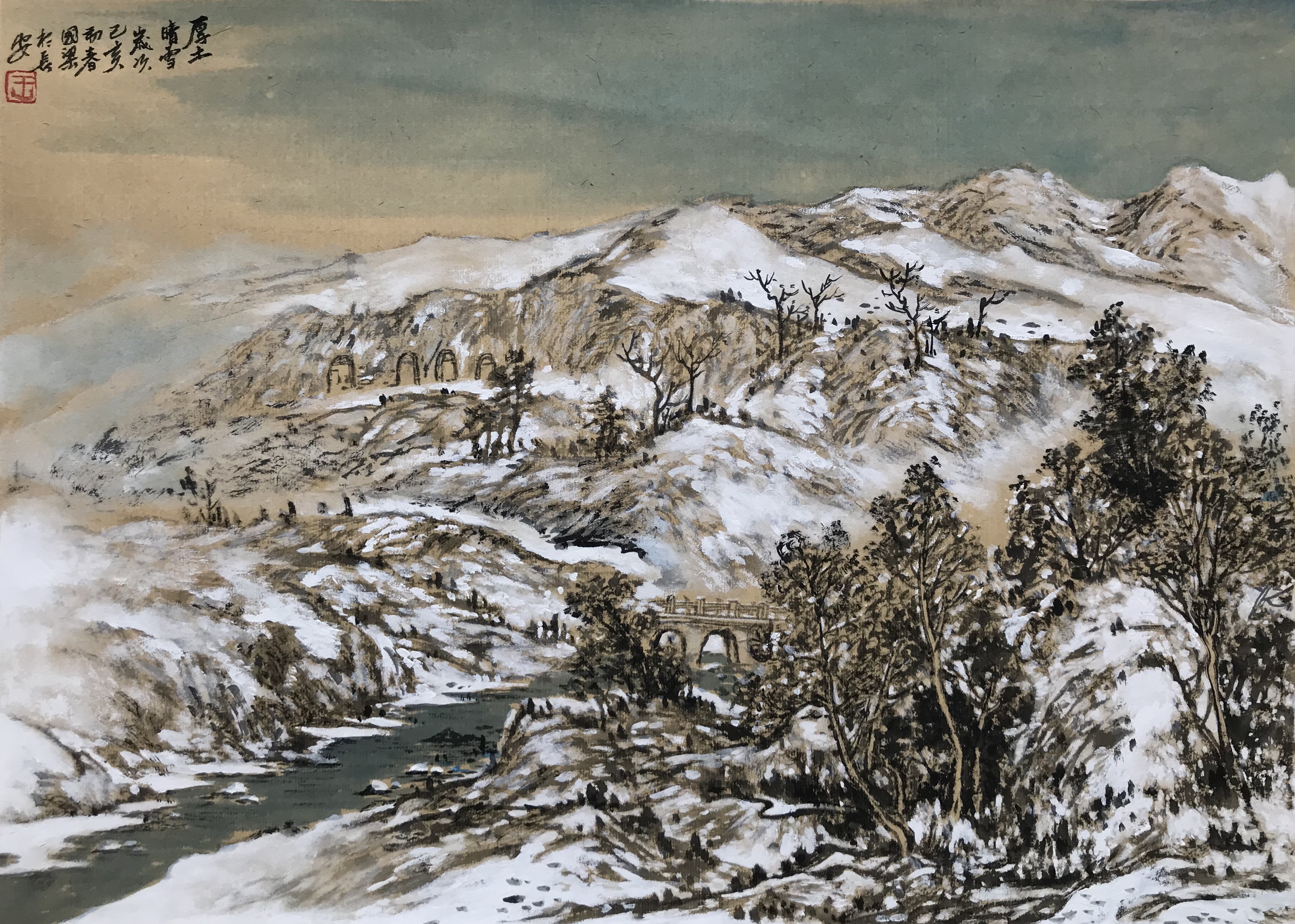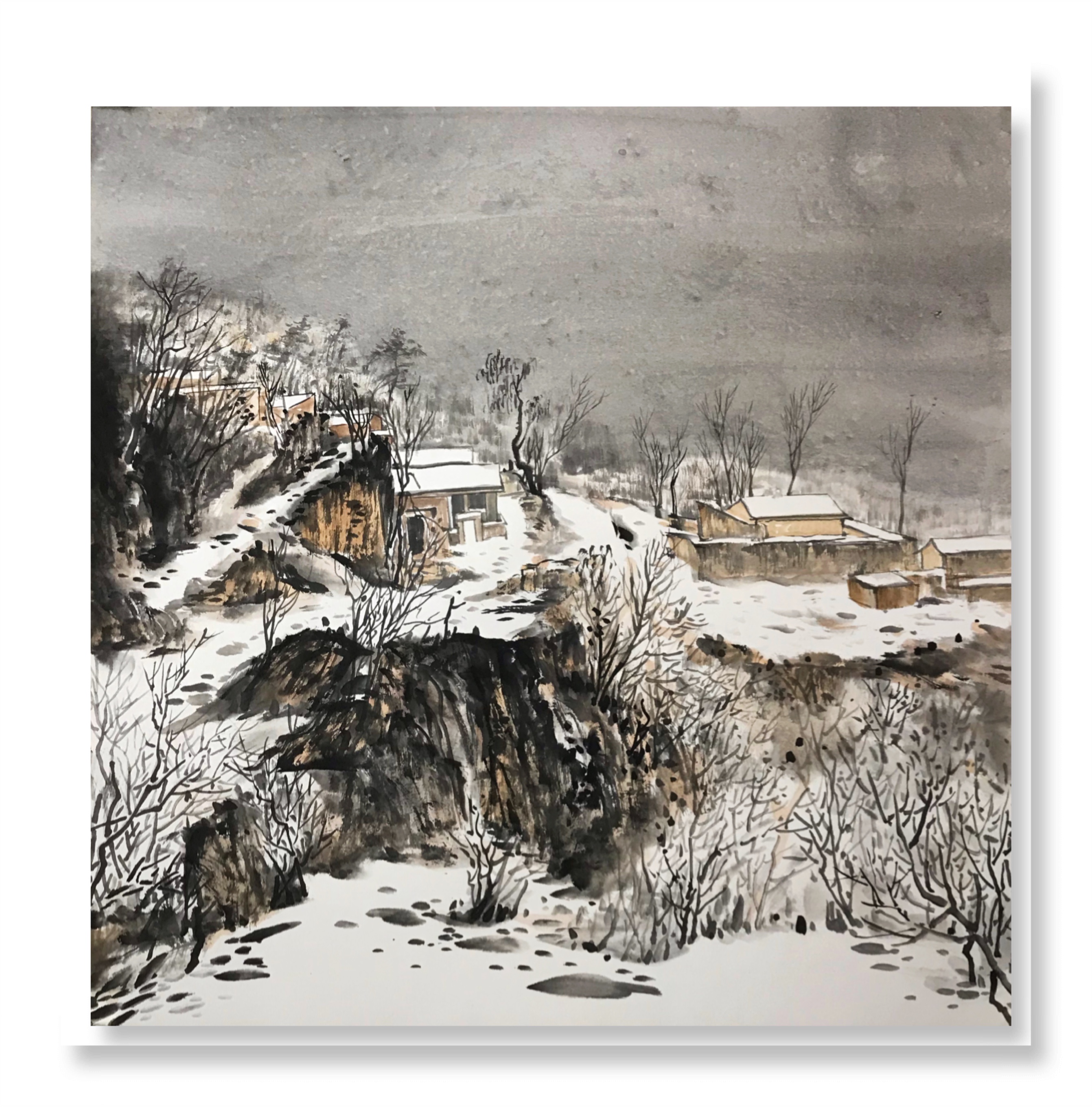 快雪时晴,国梁的一批雪景作品也出现在我们面前,令人眼前一亮。