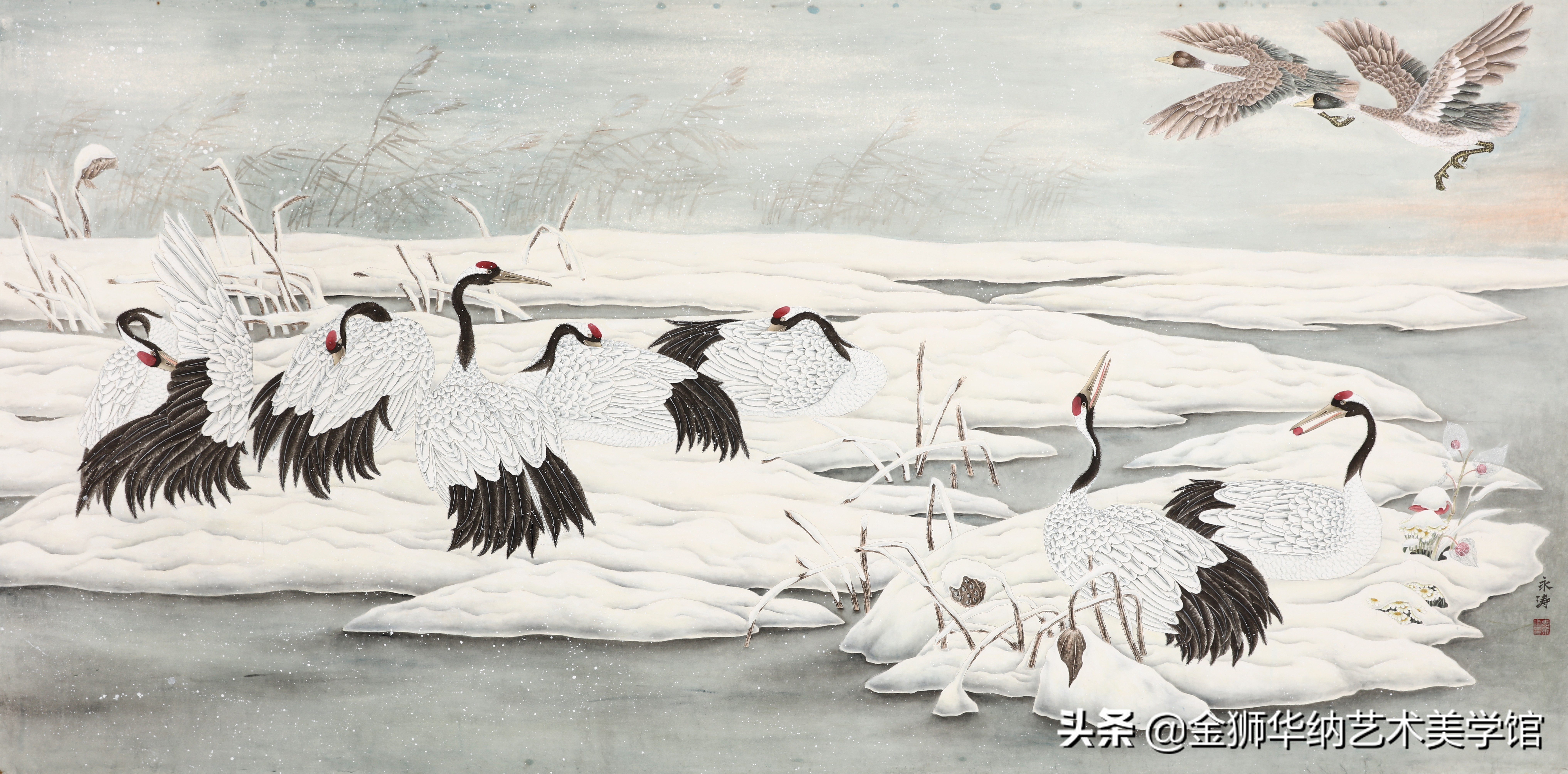 画家惠永涛先生艺术简介及优秀作品(百米百鹤图)欣赏!!