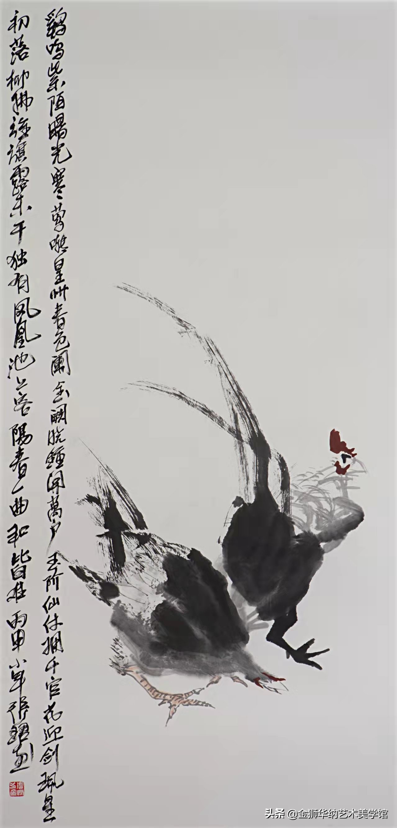 他的作品,能在水墨俱下的过程中,一次性完成物象结构、书法用笔、水墨关系和要表达的情绪,体现了他对中国画本体语言长期深入地锤炼研究。这种锤炼研究,就是对长安画派内核的承袭、深化、发展过程,在学术上非常重要。不止对于长安画派而言,对于整个中国水墨写意画,也是防止堕落入简笔画泥潭危险的指针。