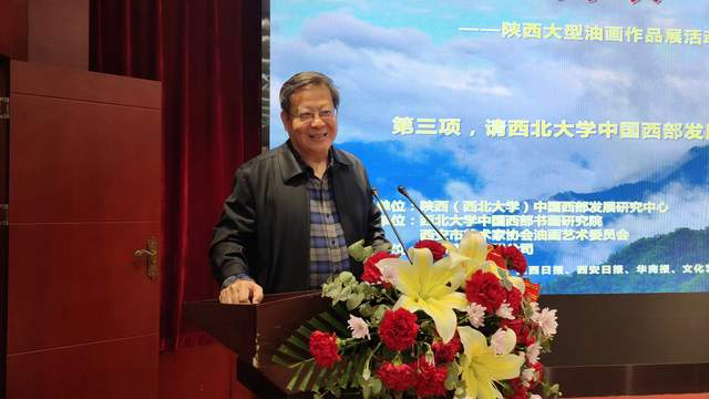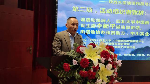 陕西省人大原副主任、西北大学中国西部发展研究中心高级顾问刘维隆,陕西省人大原秘书长、西北大学中国西部发展研究中心理事长桂维民,陕西省商务厅原厅长、西北大学中国西部发展研究中心执行理事长李雪梅等领导和省美协副主席宋亚平、刘奇伟,西北大学中国西部书画研究院院长赵居阳,西安市美协主席杨霜林、副主席李新平,中川实业有限公司董事长张维志,以及著名油画家郭北平、潘晓东、韩国栋、耿建义等六十多人出席。西安市美协油画艺委会秘书长党民做了活动安排发言,桂维民、李新平、张维志分别作动员讲话。
