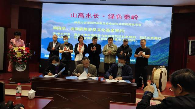 2022年4月12日上午10点,“山高水长·绿色秦岭”陕西大型油画作品展活动启动仪式暨新闻发布会在西北大学太白校区顺利举行。
