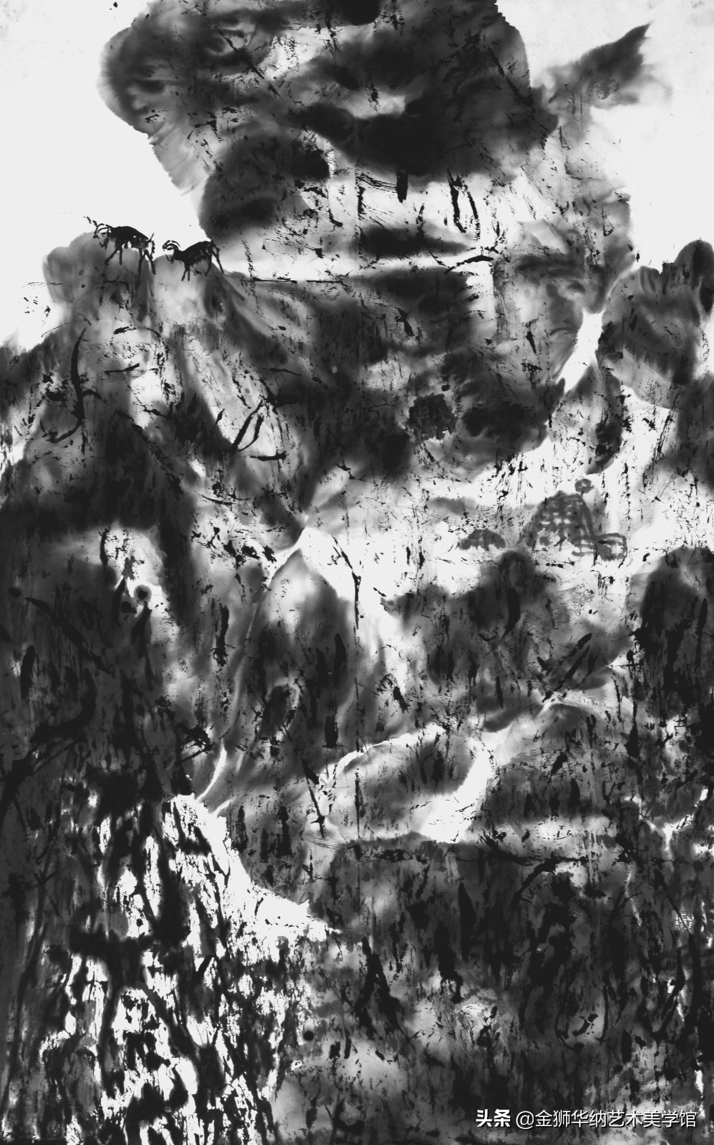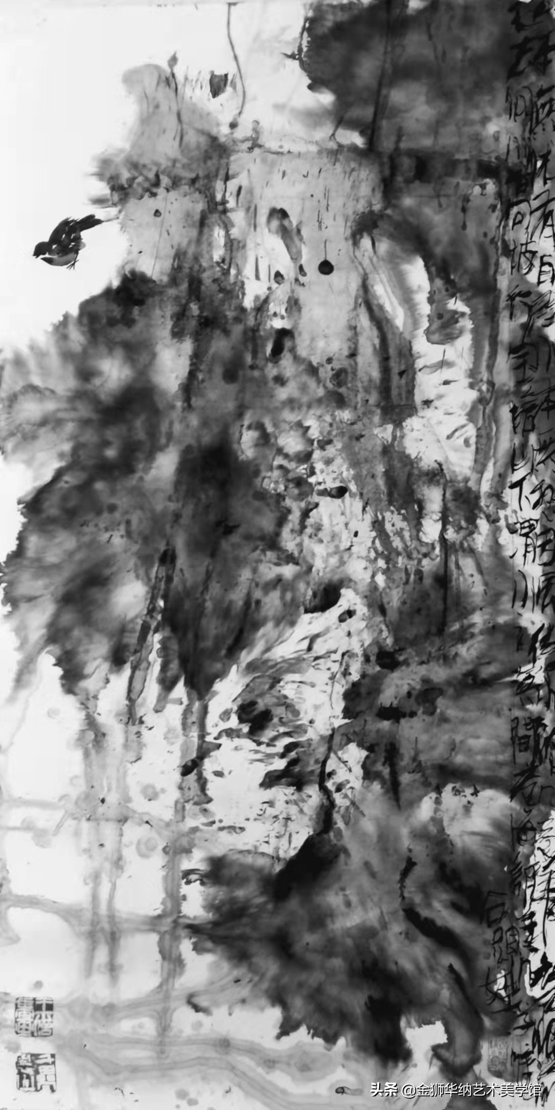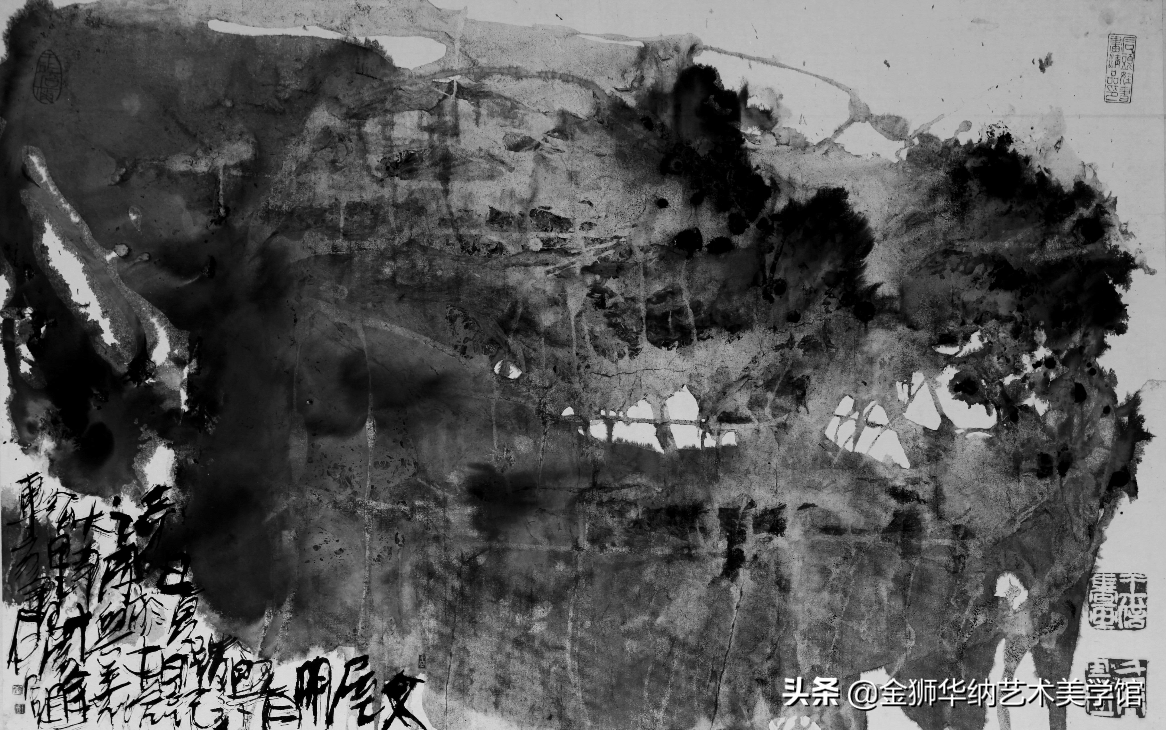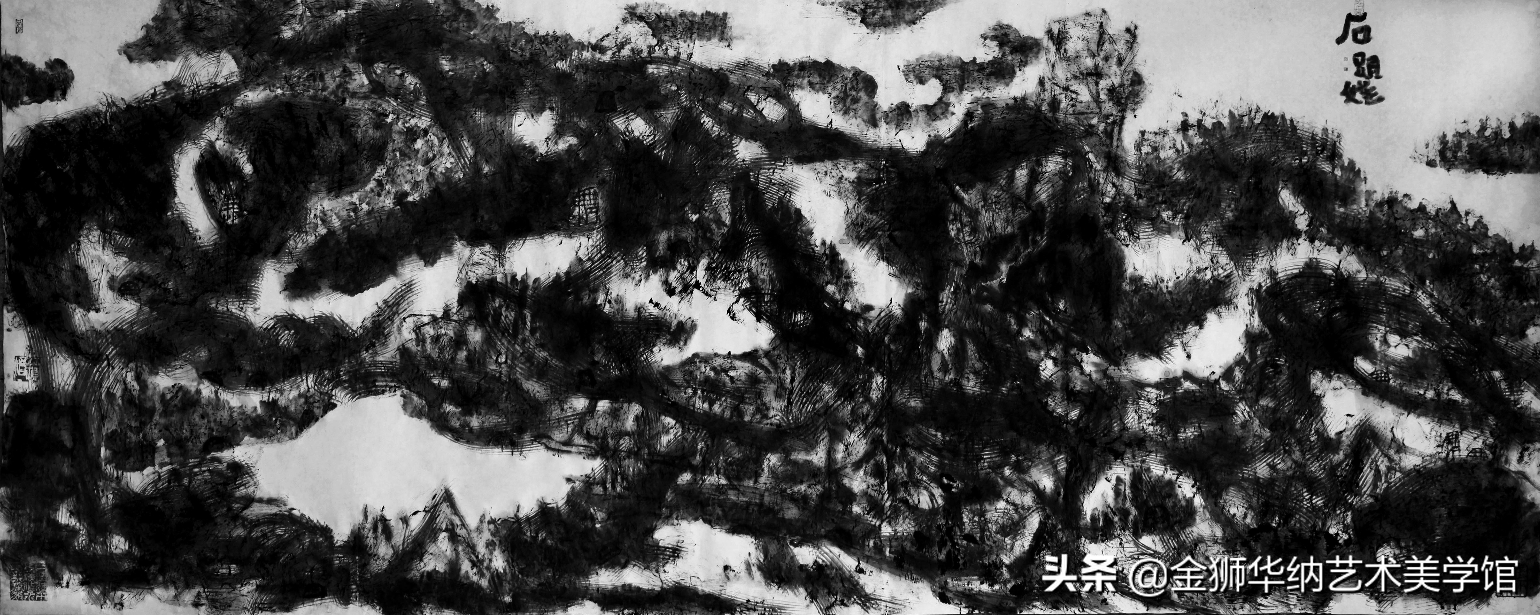 六、在章法研究方面,石头娃在使用传统的“太极”构图法的基础上又创造了“黄金切割”构图法:当你在创作的过程中,发现不同的空白时,它就符合美的基因。