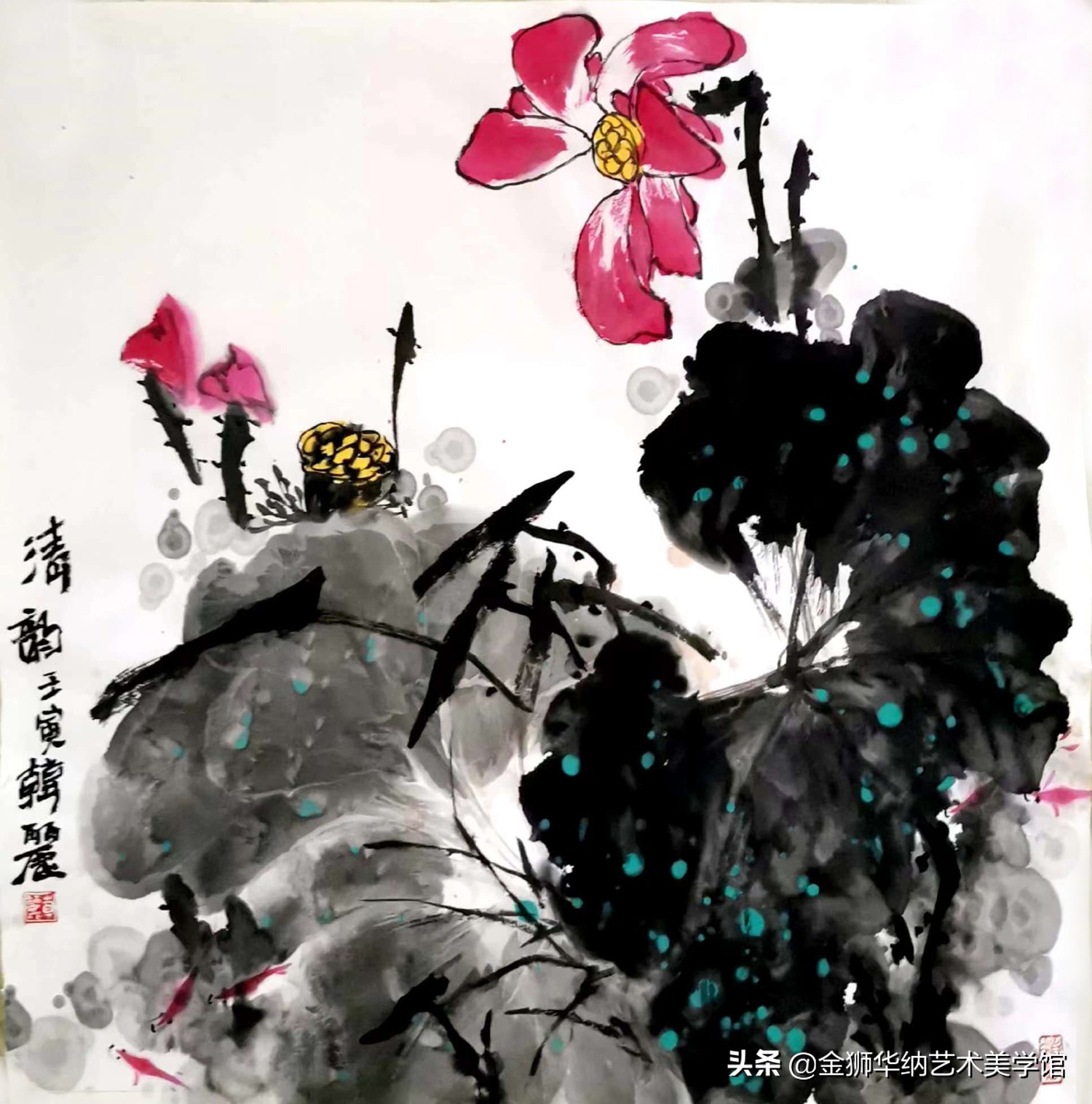 周敦颐在《爱莲说》,将莲花比喻为:“出淤泥而不染,濯清涟而不妖,中通外直,不蔓不枝”把莲花高洁的品格说到了极致,自然韩丽将自己的斋号叫为——说莲堂。