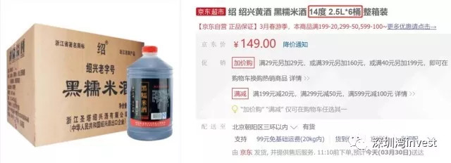 长期以来,黄酒价格持续走低,不仅远不如白酒,甚至不如啤酒和水。除产能过剩及库存高企外,黄酒给人的形象就不那么高大上。下图来自京东,若不仔细看,黑乎乎的一大桶还以为是餐馆用的酱油,2.5升装6桶价格为149元,平均每斤不到5元,比有些矿泉水都便宜。如若招待宾客,提着这么一桶上桌,估计能把客人吓走。