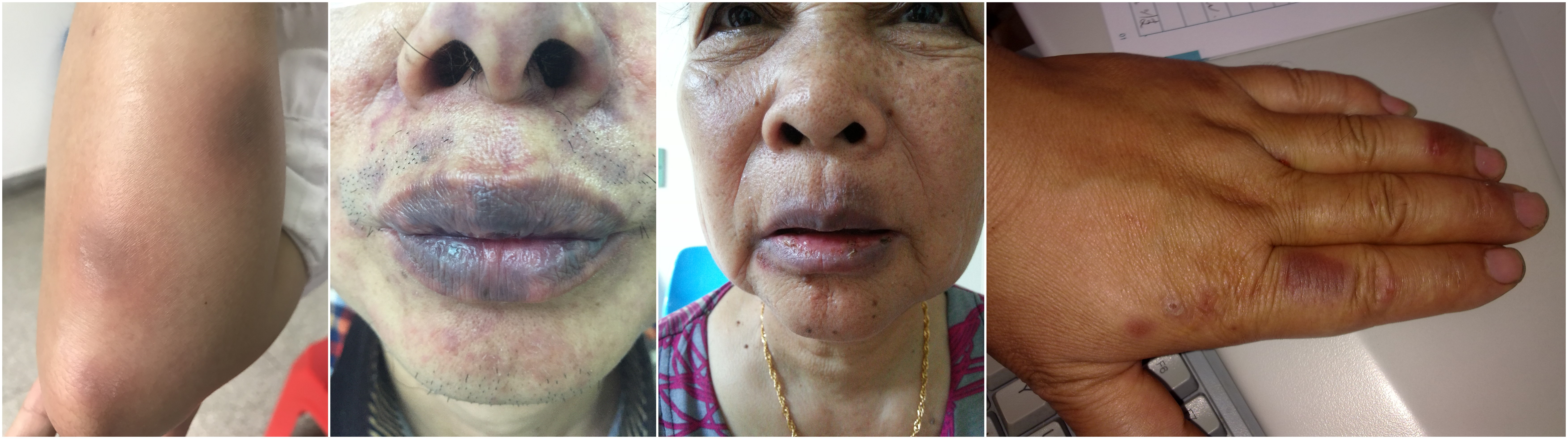 多发生在口唇及口周、龟头、肛门等皮肤黏膜交界处,指(趾)间皮肤、手背、足背、躯干等也是常见部位。皮疹特点是局限性圆形或椭圆形红斑,鲜红色或紫红色,水肿性,炎症剧烈者中央可形成水疱。愈后留色素沉着,发作愈频则色素愈深。每次服用同样药物后则在同一部位发生,亦有广布全身者。皮疹大小不等。