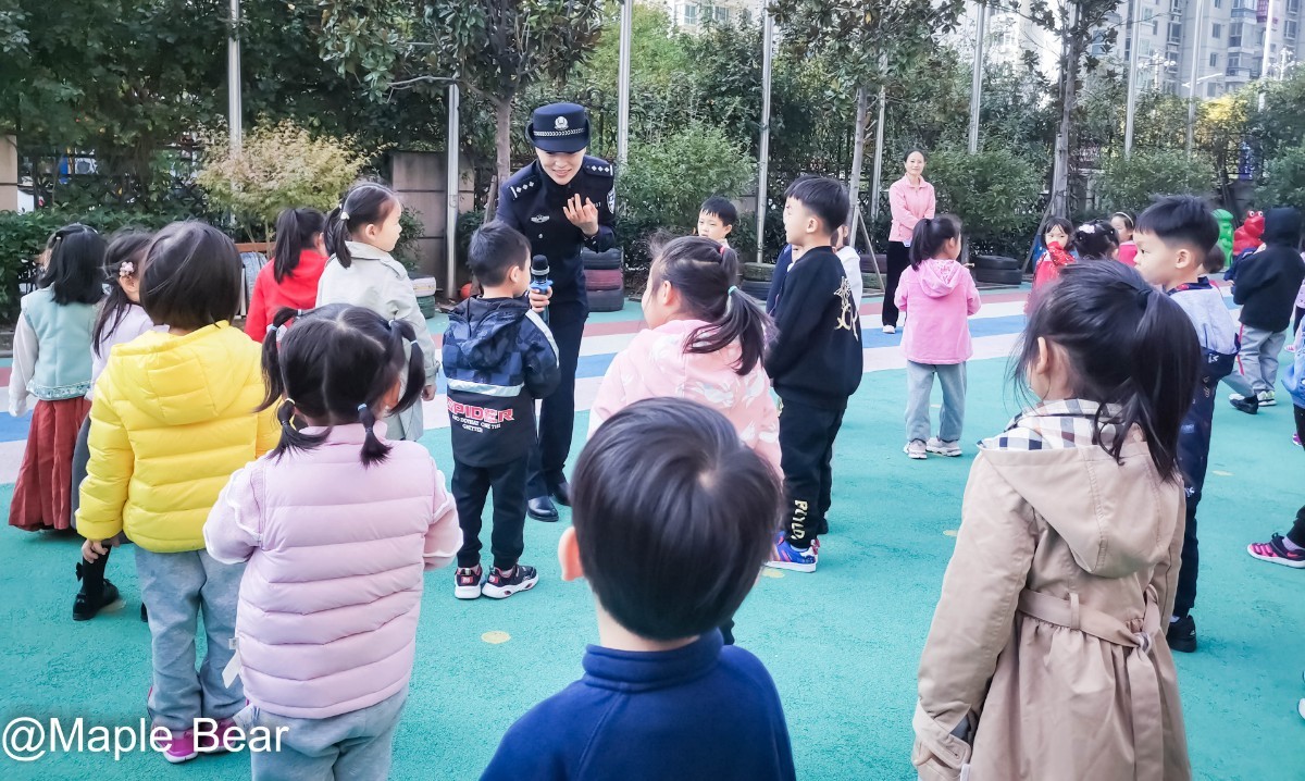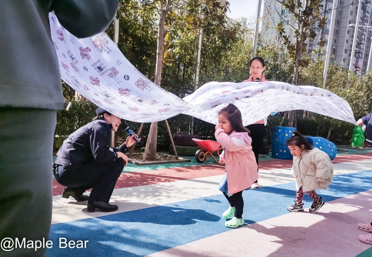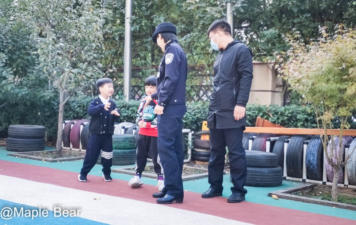 说到这里大家明白了吧,这是一场生动的“防拐骗演习”,我们想试试孩子们在公共场所有没有自我保护意识,那些“陌生人”,是由一直很关心幼儿园工作和孩子们成长的文化路分局的孙警官和她的同事扮演的,三位警官脱下警服,身着便装,变身亲切和蔼的邻家姐姐和邻家哥哥的形象,和孩子们来了一个友好互动,