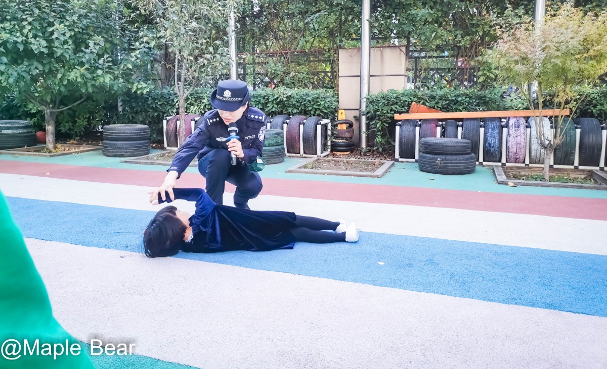 孙警官也对这次“防拐骗演习”做了点评,并且现场教了孩子一些实用的自救知识,小朋友也积极参与体验的环节,比如: