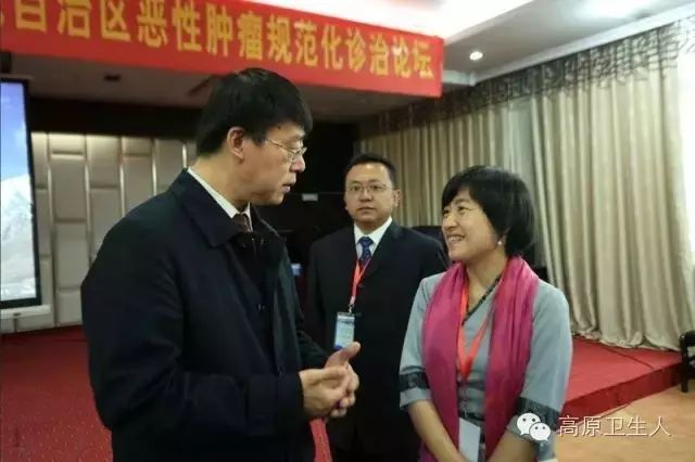 自治区人民医院常务副院长、援藏领队韩丁,自治区人民医院副院长蒲智致辞。自治区人民医院副院长泽永革,北医三院肿瘤化疗与放射病科主任马力文等领导、专家出席。来自北医三院、北京协和医院和全区18家各级医疗机构的肿瘤相关学科领域的科室主任、学科带头人等120余名医务人员参加了会议。