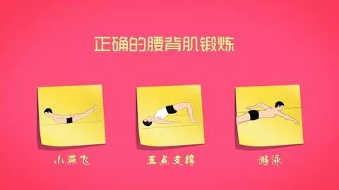 正确的腰背肌锻炼可有小燕飞、五点支撑运动,游泳也是一种较好的锻炼方式。
