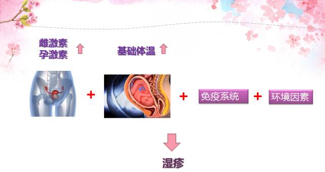因为孕妈妈怀孕后孕育胎儿的需要,会分泌更多的雌激素和孕激素,基础体温会随之升高,加上体内怀有一个宝宝,免疫系统也会发生变化,以及环境的因此,因此孕期皮肤就容易出现湿疹。