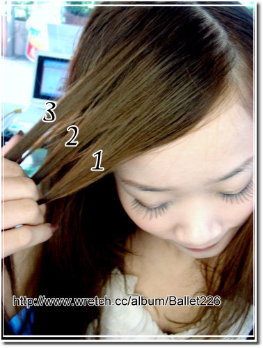 ※像下圖一樣.要和髮線平行的抓一直條喔