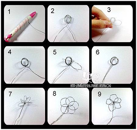 1。拿出一支筆,將鐵絲在筆上繞出5個圈